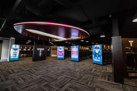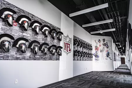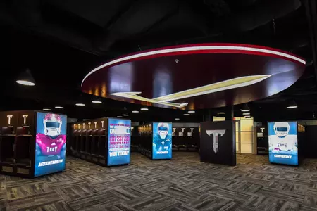 The North End Zone Football Facility features a new locker room, strength and conditioning center, athletic training facility, nutritional "fueling station", mud room with cool down plunge pool and two team lounges.