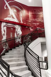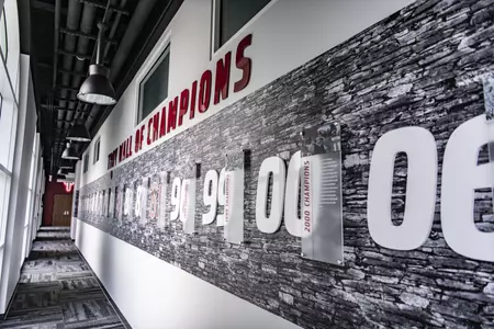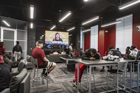 The North End Zone Football Facility features offices for the football staff and meeting rooms with state-of-the-art video technology.