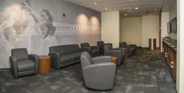 Under the main playing court sits a 10,000 sq ft area of basketball practice courts. These facilities are shared by both the men's and women's basketball teams and the volleyball program.