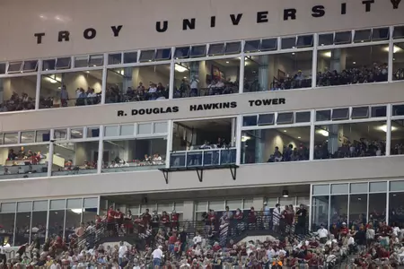 The Troy University football program unveiled a newly renovated, $18 million Veterans Memorial Stadium as the final piece of its Division I-A move in Fall 2003. The project, which took more than a year to complete, increased the facility’s seating capacity to 30,000, an increase of more than 12,000 seats.