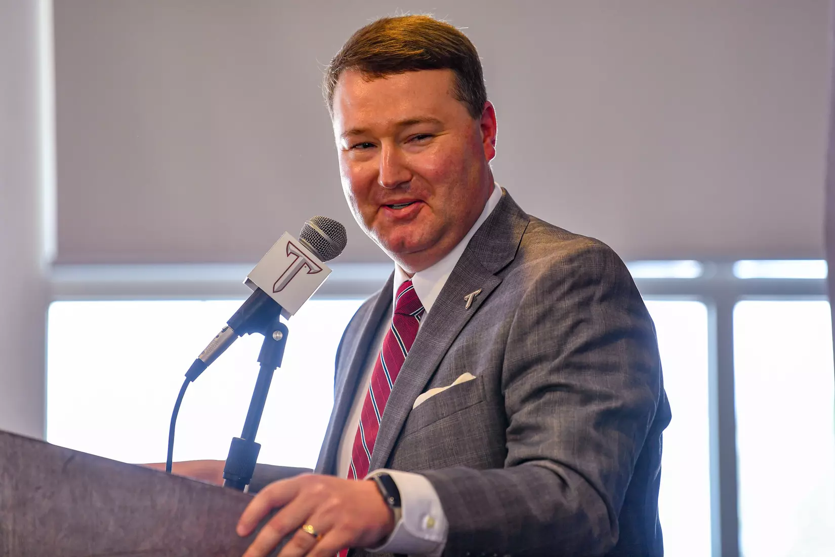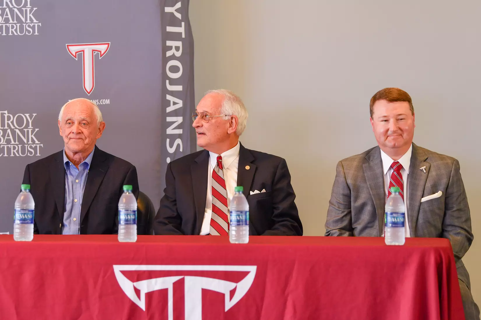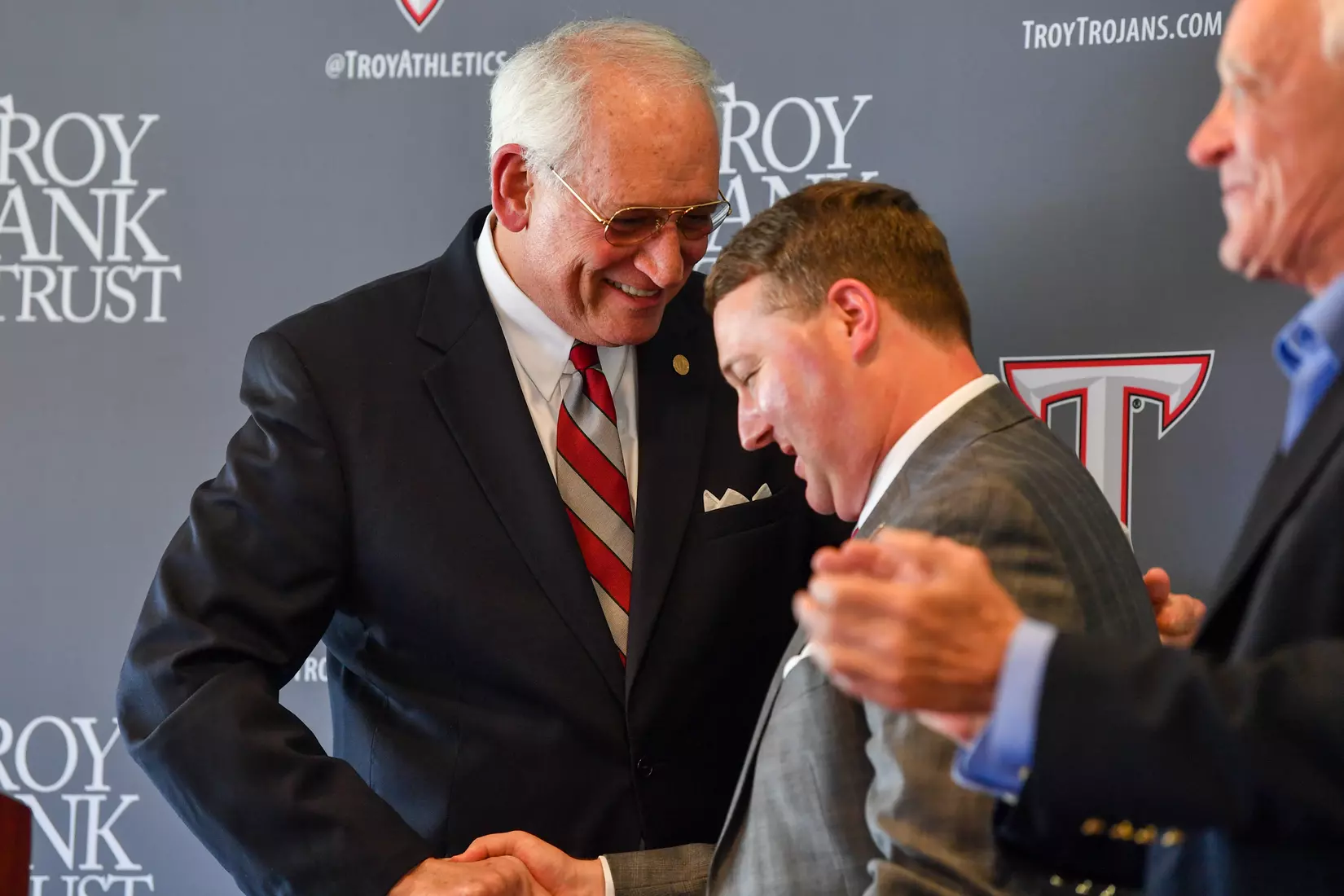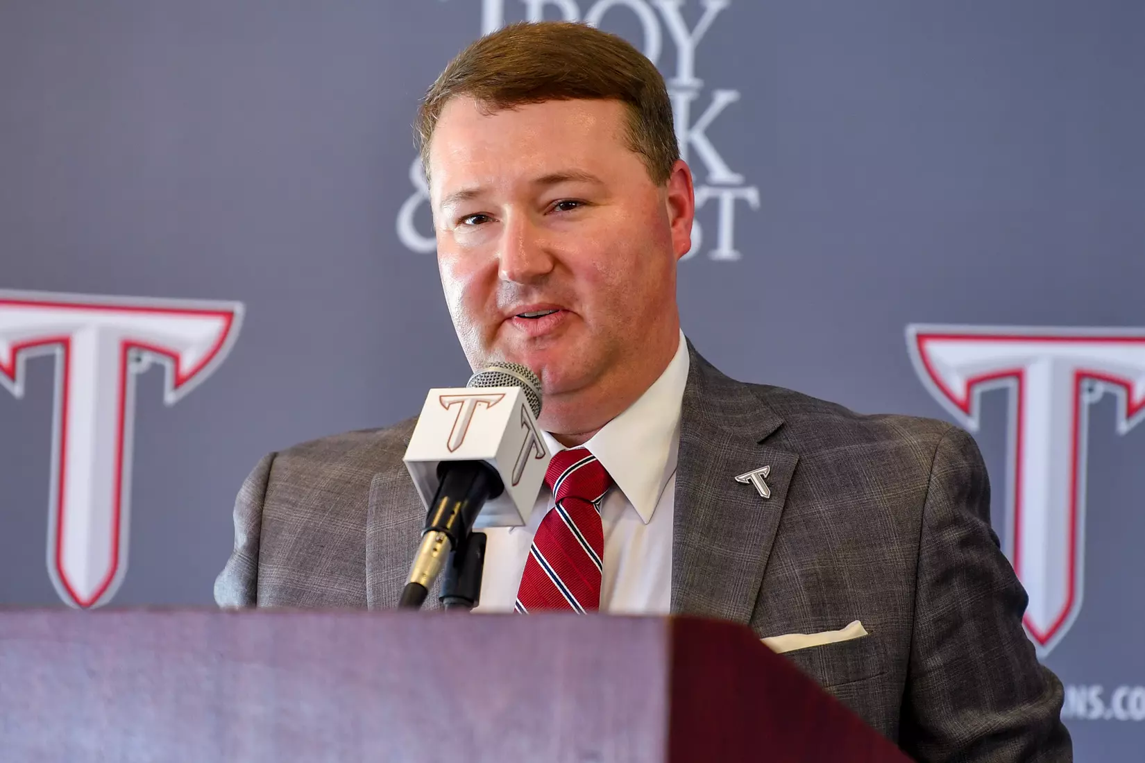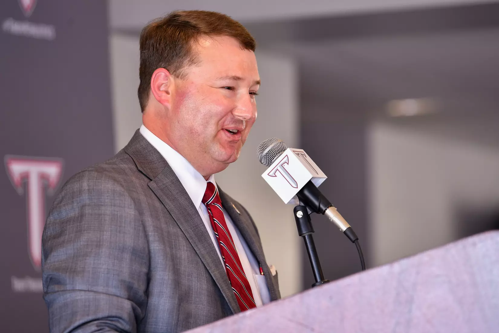 TROY, Alabama – Brent Jones was introduced as Troy University's new Director of Athletics following a two-year stint as Troy's Deputy Director of Athletics for External Operations, Troy University Chancellor Dr. Jack Hawkins, Jr., announced at a press conference Wednesday afternoon.