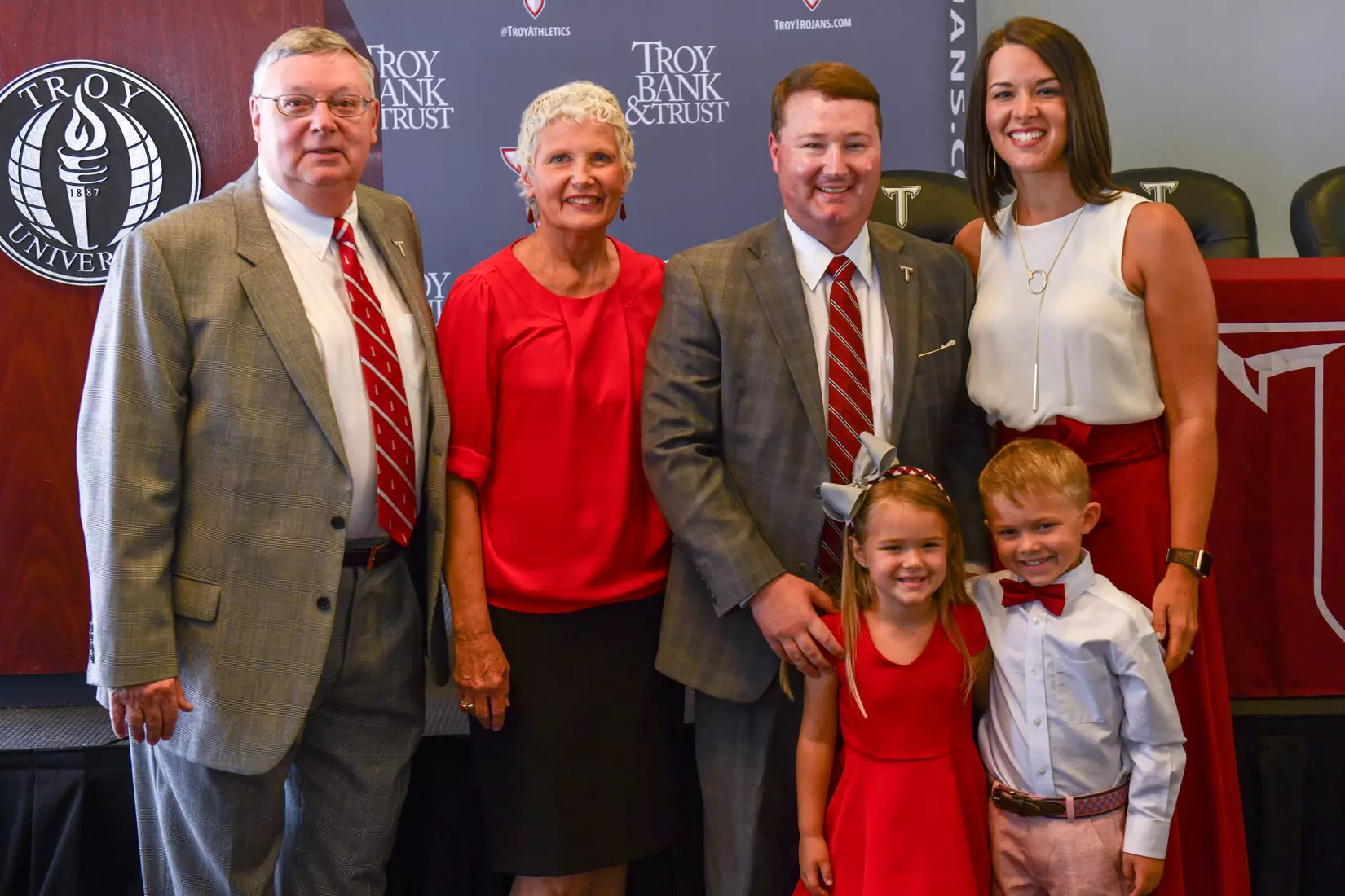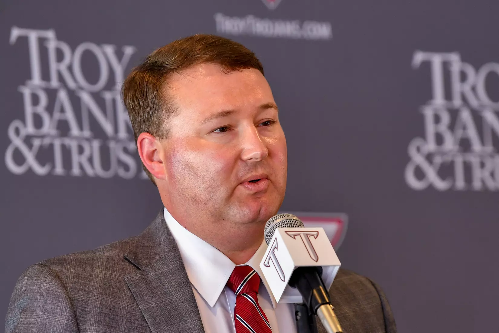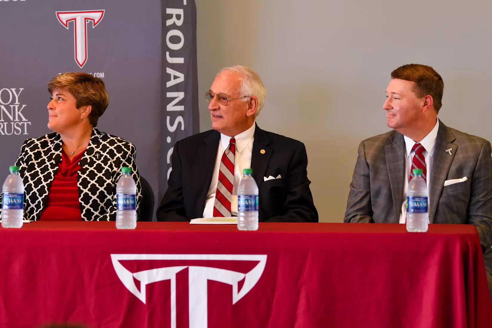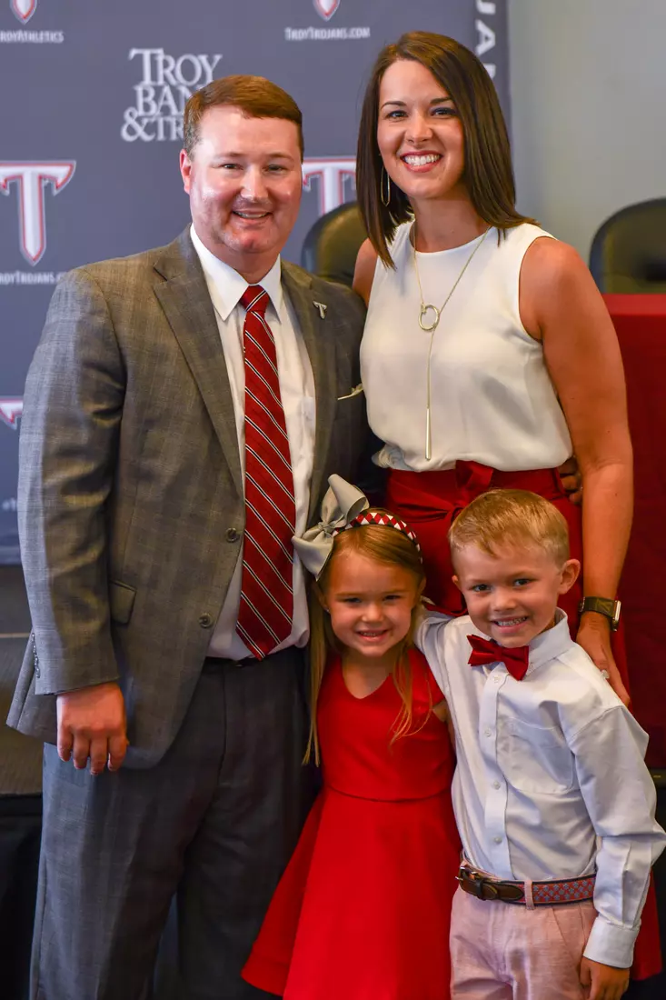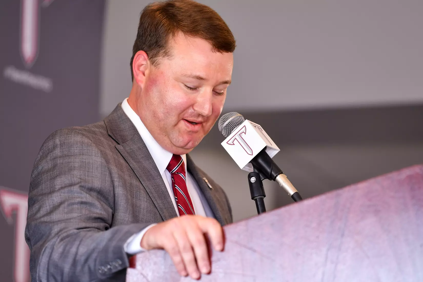 TROY, Alabama – Brent Jones was introduced as Troy University's new Director of Athletics following a two-year stint as Troy's Deputy Director of Athletics for External Operations, Troy University Chancellor Dr. Jack Hawkins, Jr., announced at a press conference Wednesday afternoon.