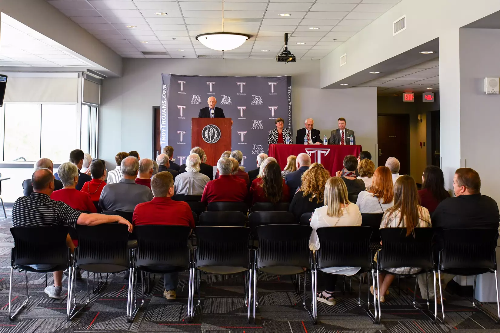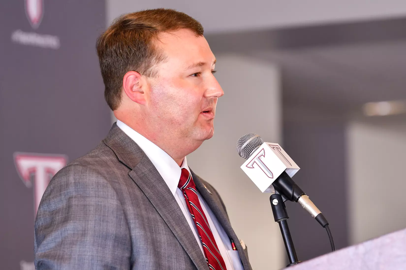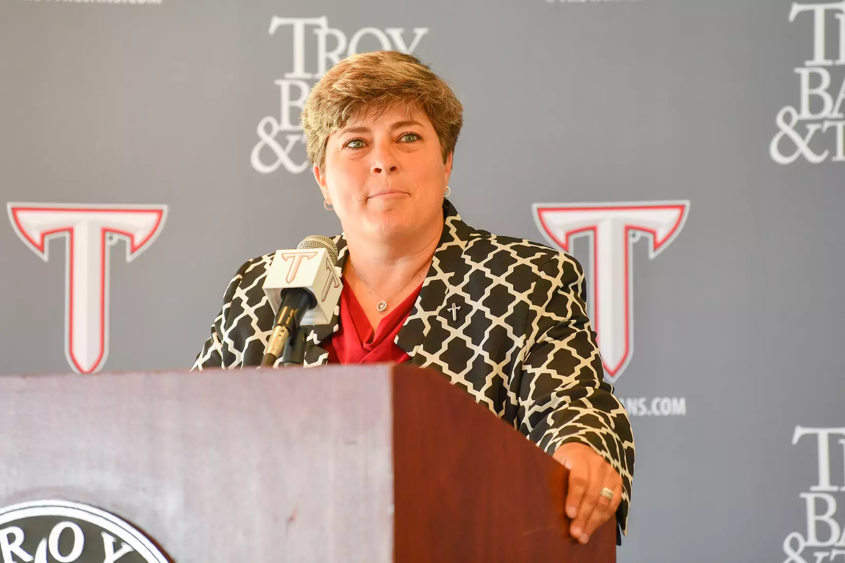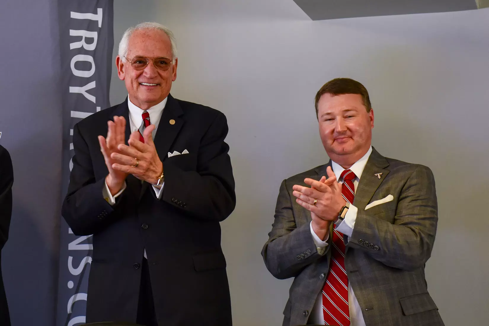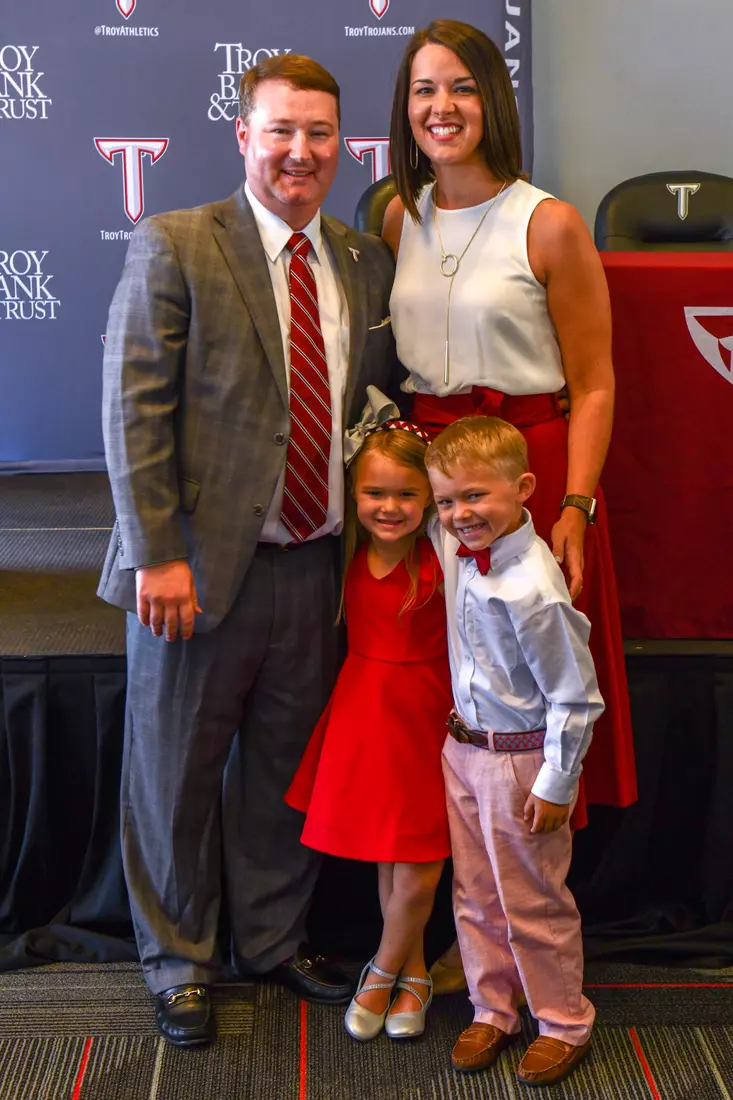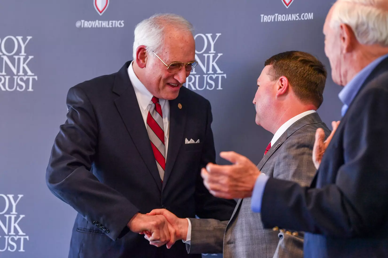 TROY, Alabama – Brent Jones was introduced as Troy University's new Director of Athletics following a two-year stint as Troy's Deputy Director of Athletics for External Operations, Troy University Chancellor Dr. Jack Hawkins, Jr., announced at a press conference Wednesday afternoon.
