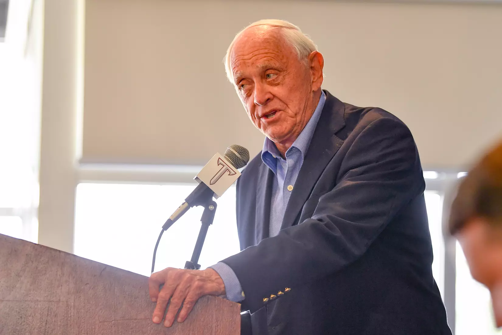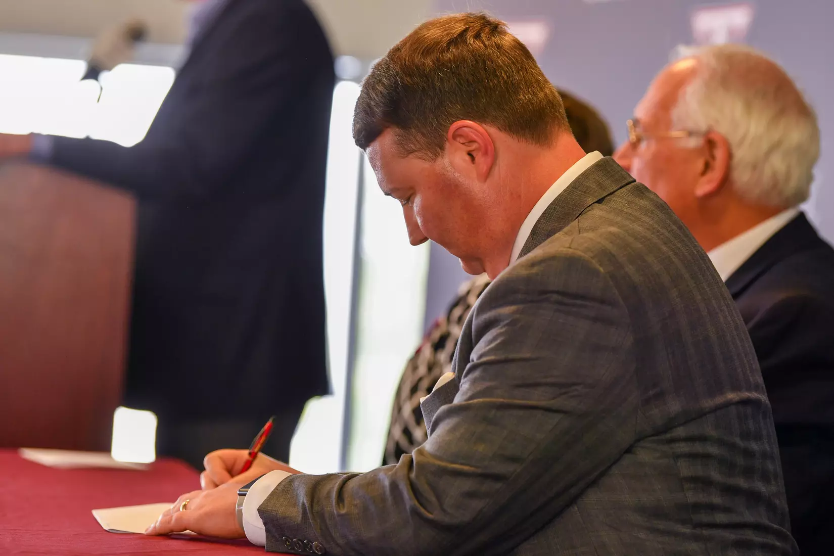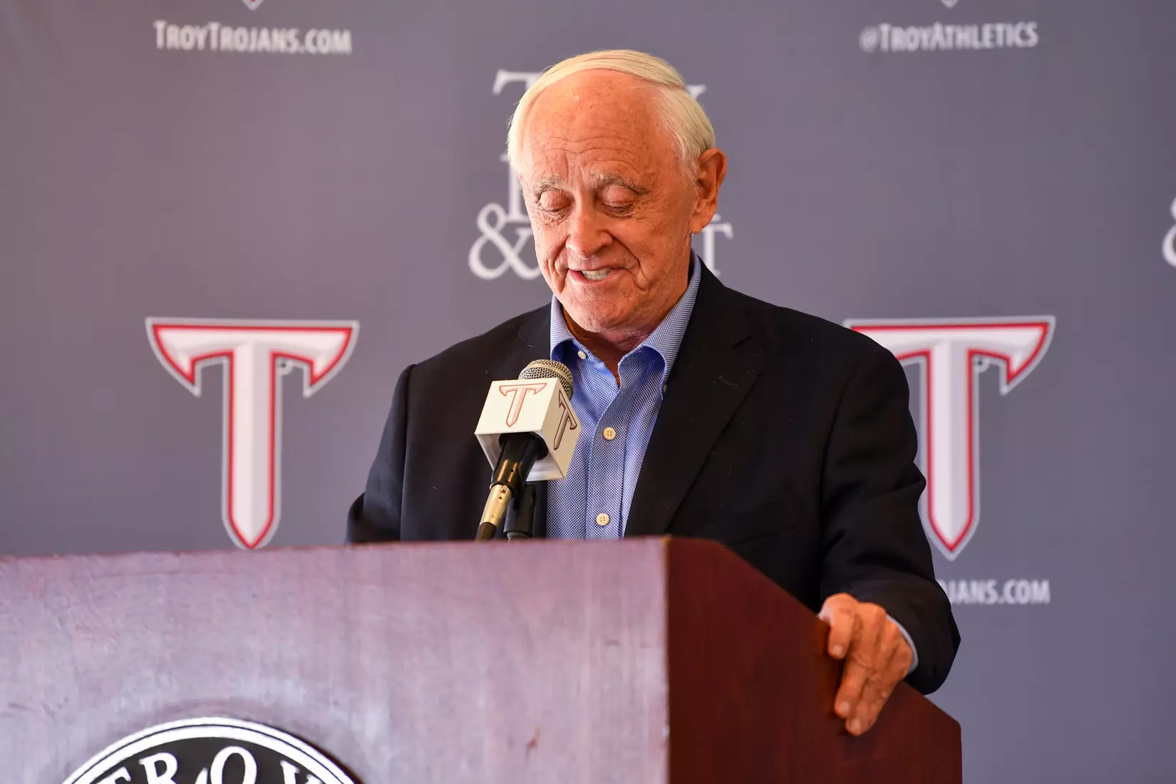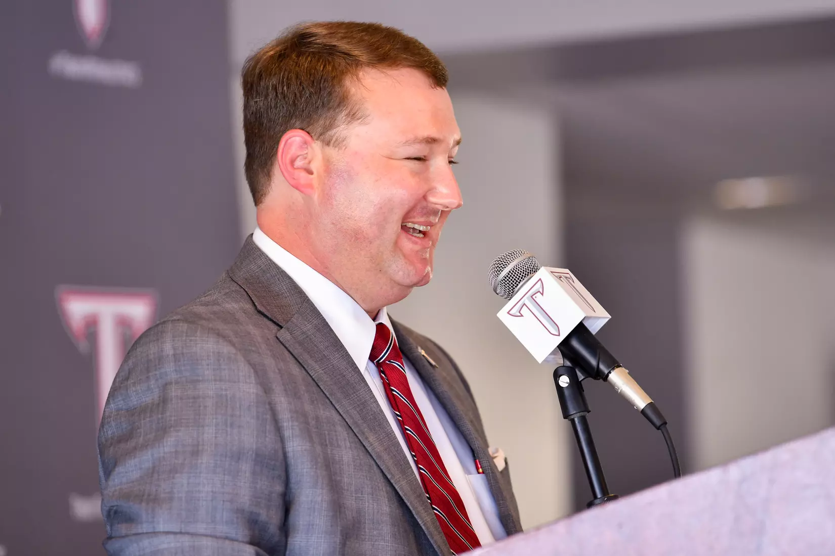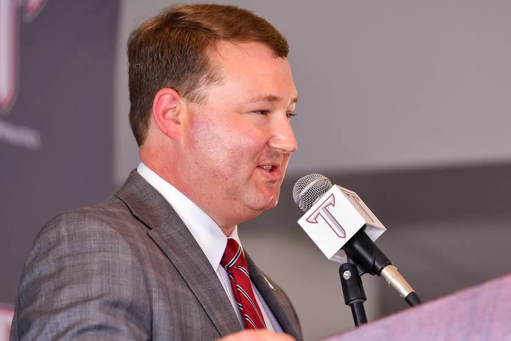 TROY, Alabama – Brent Jones was introduced as Troy University's new Director of Athletics following a two-year stint as Troy's Deputy Director of Athletics for External Operations, Troy University Chancellor Dr. Jack Hawkins, Jr., announced at a press conference Wednesday afternoon.