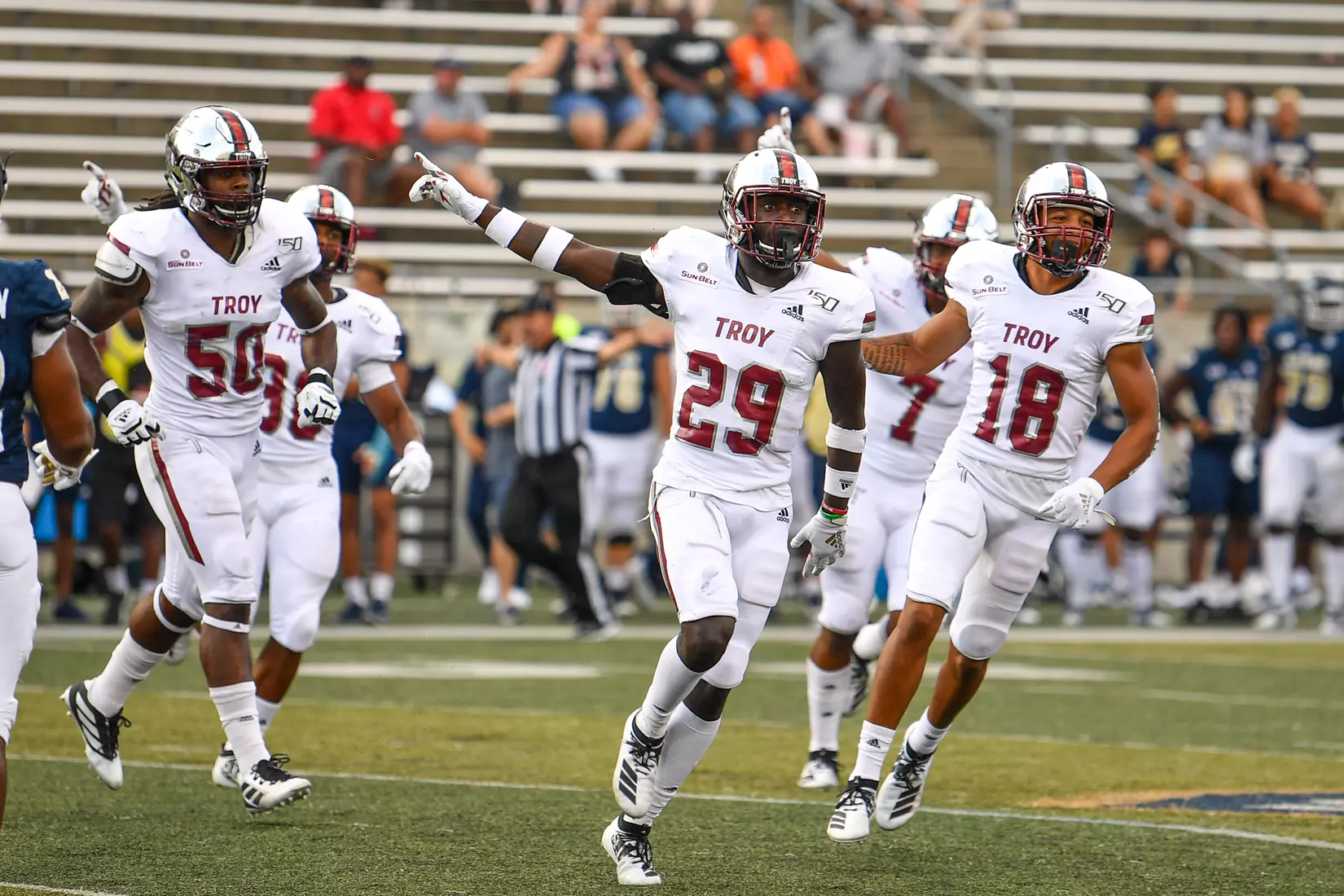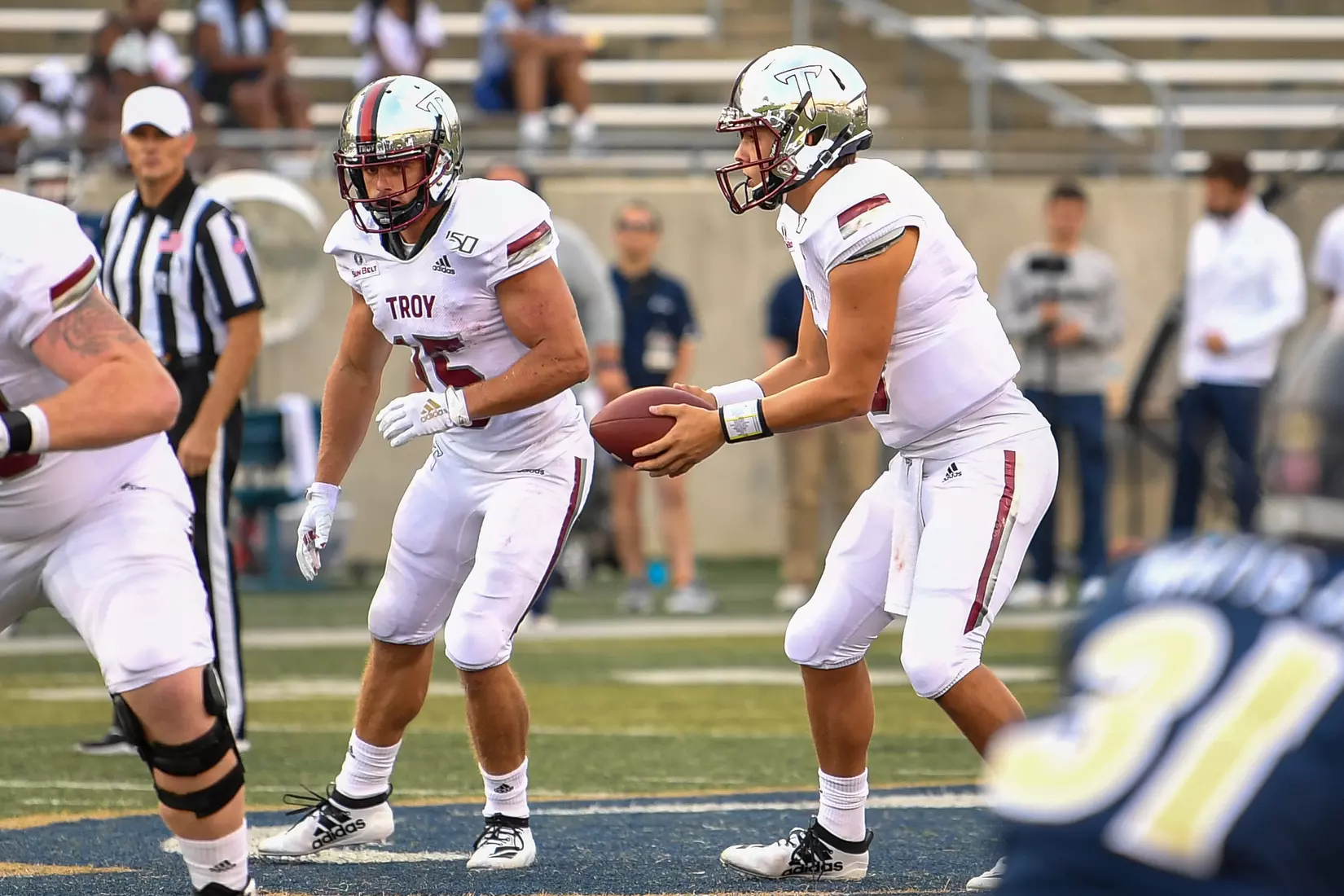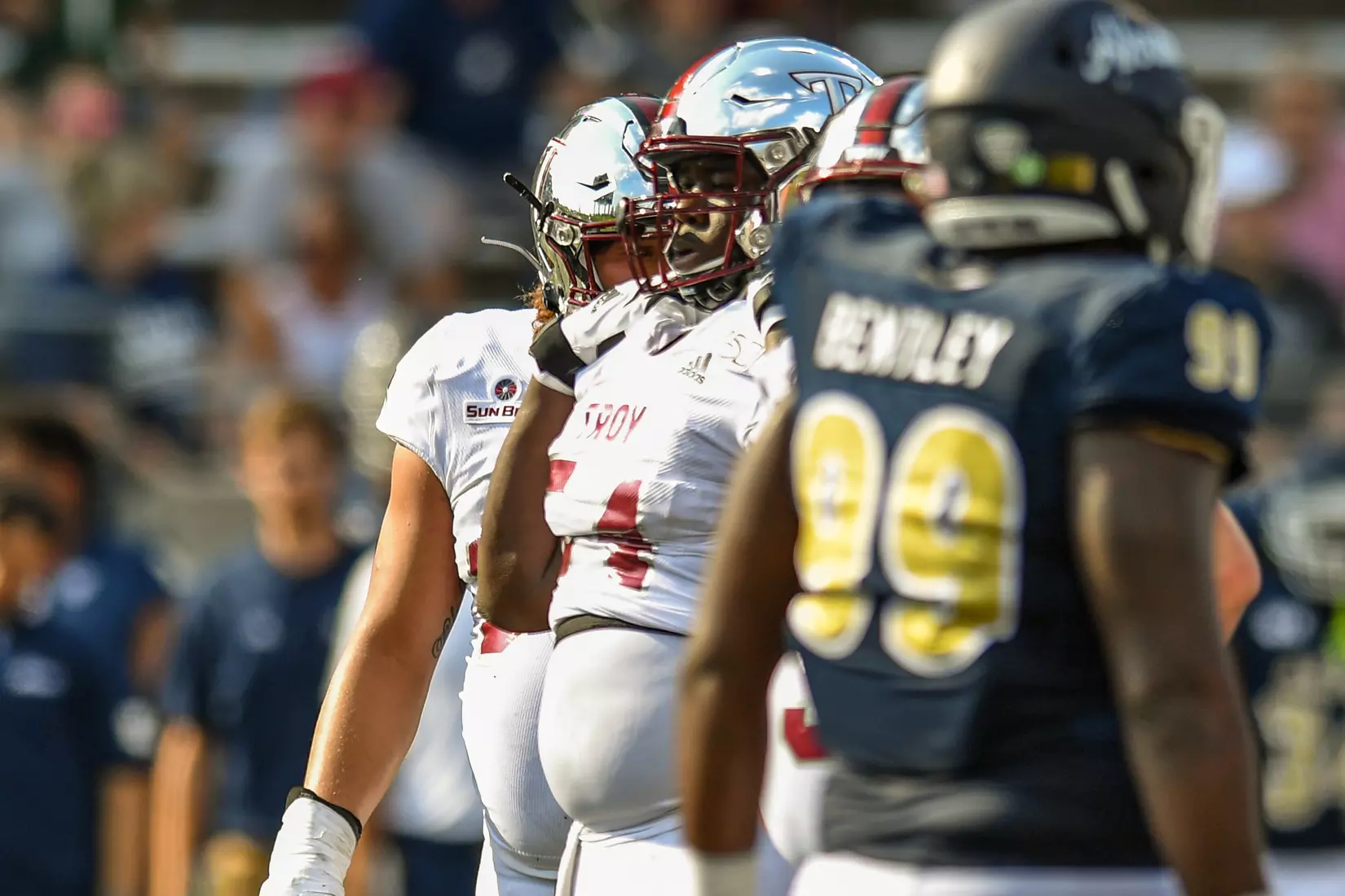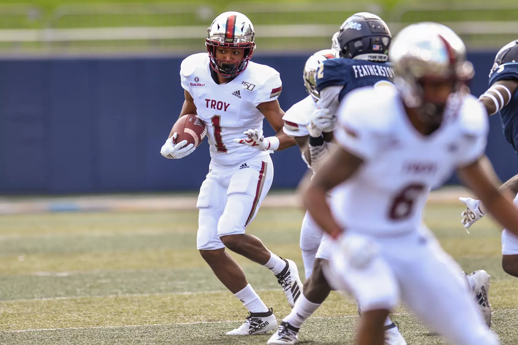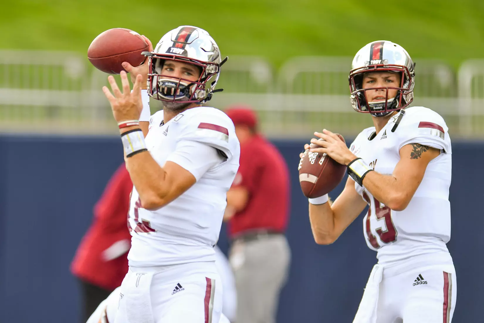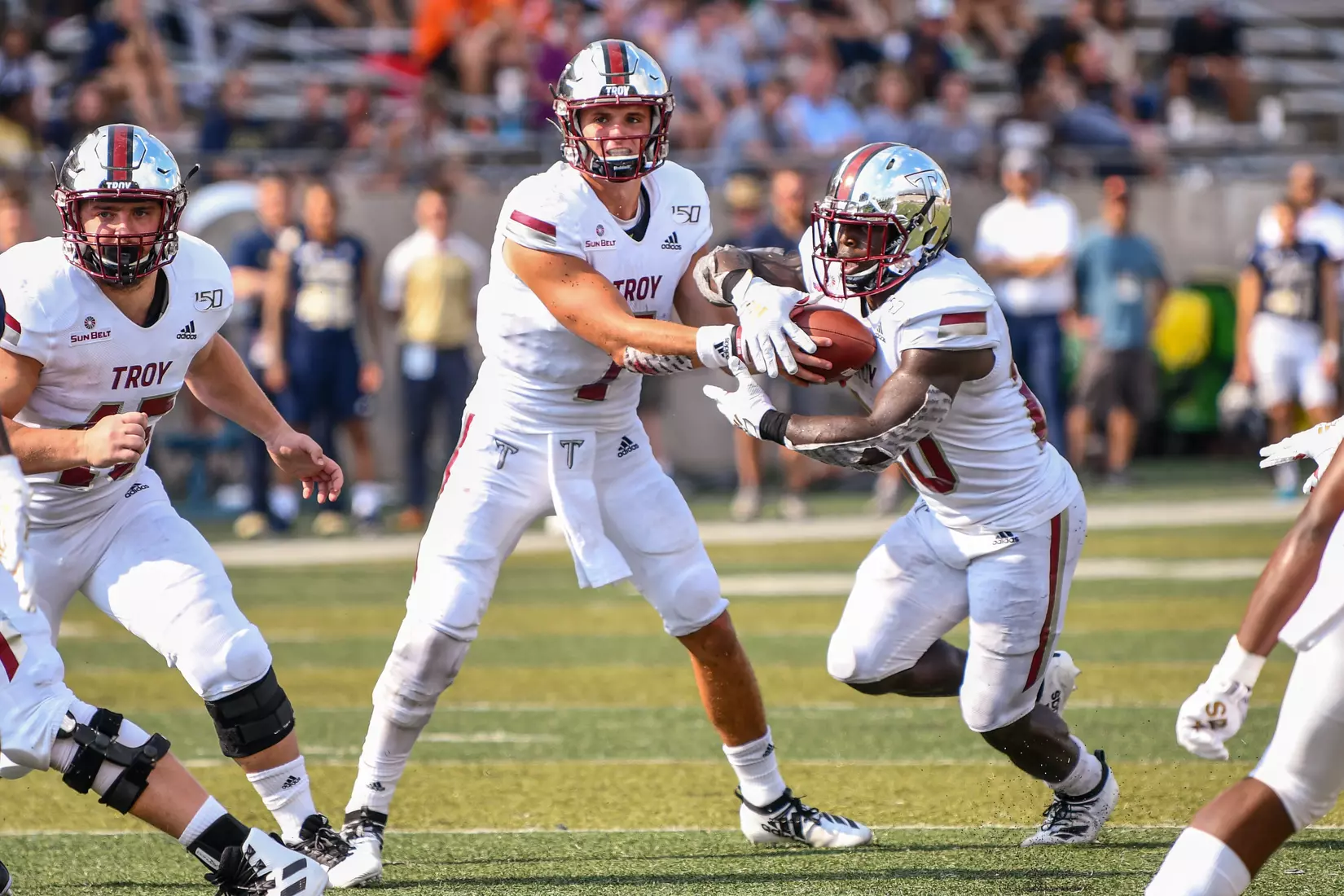 Troy (2-1) broke the game open in the second quarter with a pair of touchdowns – a 2-yard pass from Barker to Khalil McClain and a 9-yard run by Barker – to start a run of 28-straight points by the Trojans to end the game.