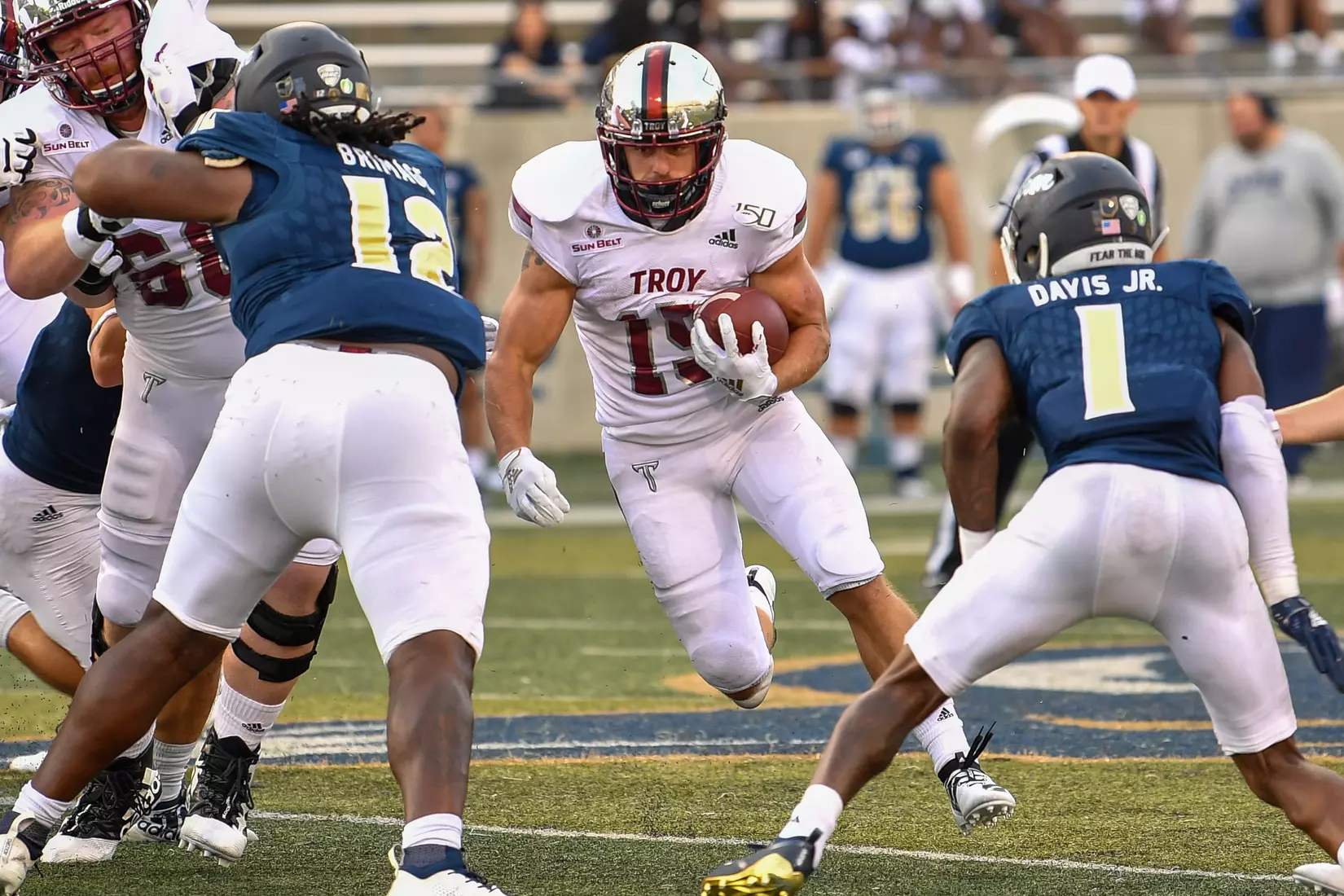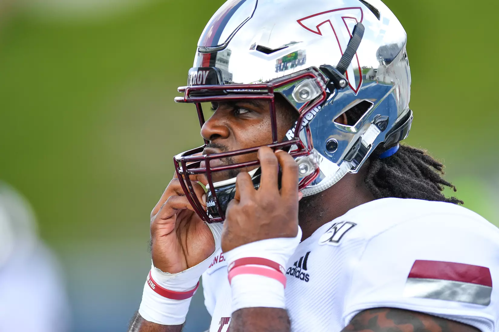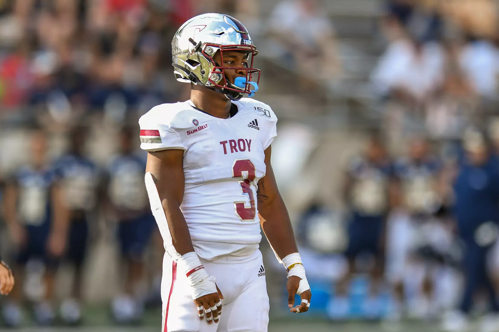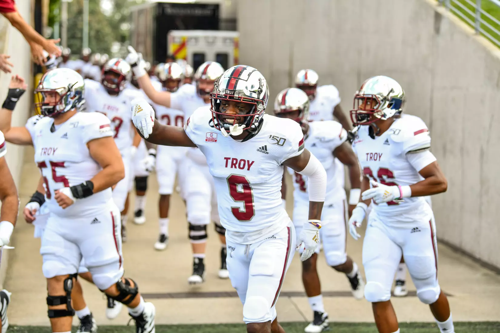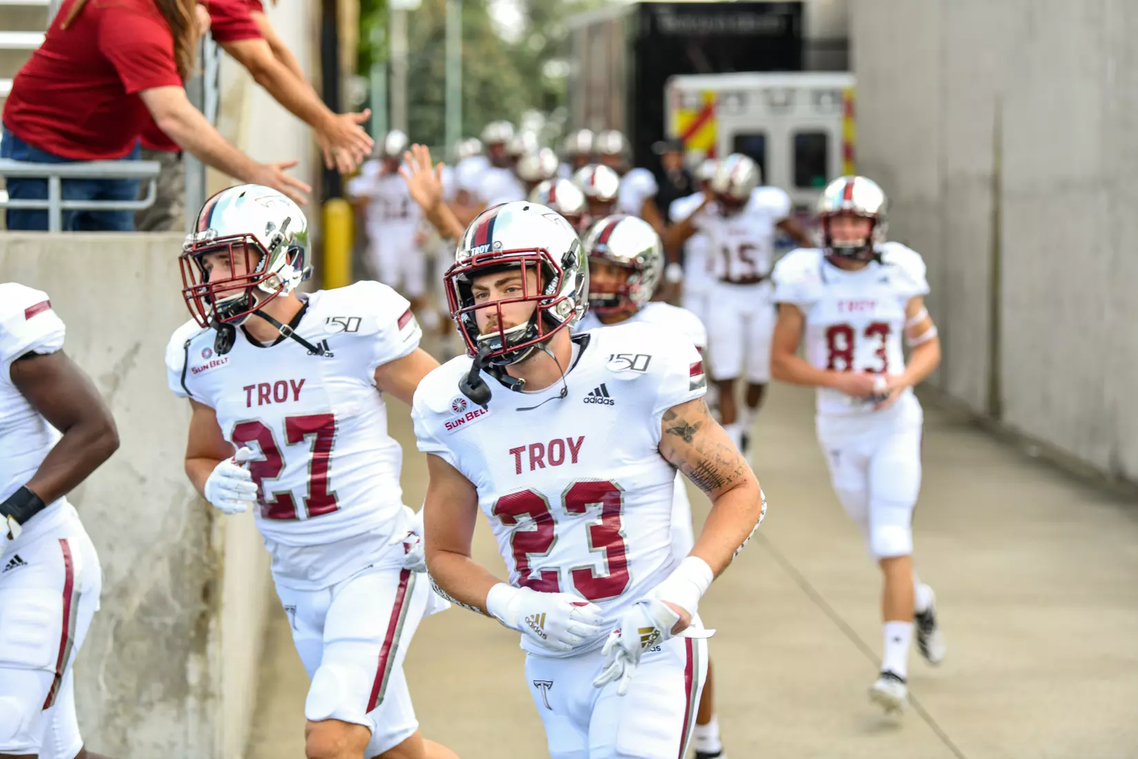 Troy (2-1) broke the game open in the second quarter with a pair of touchdowns – a 2-yard pass from Barker to Khalil McClain and a 9-yard run by Barker – to start a run of 28-straight points by the Trojans to end the game.