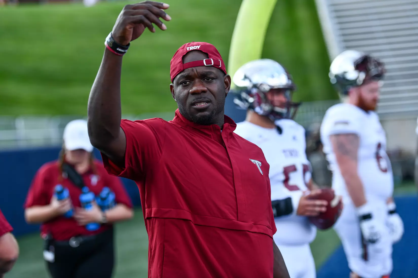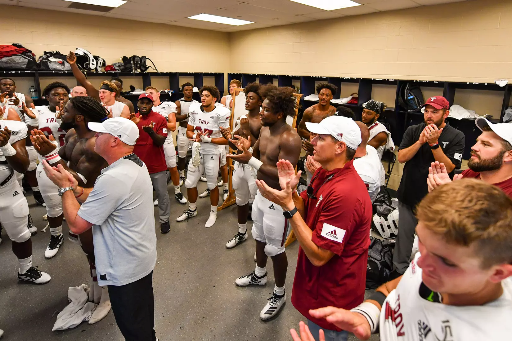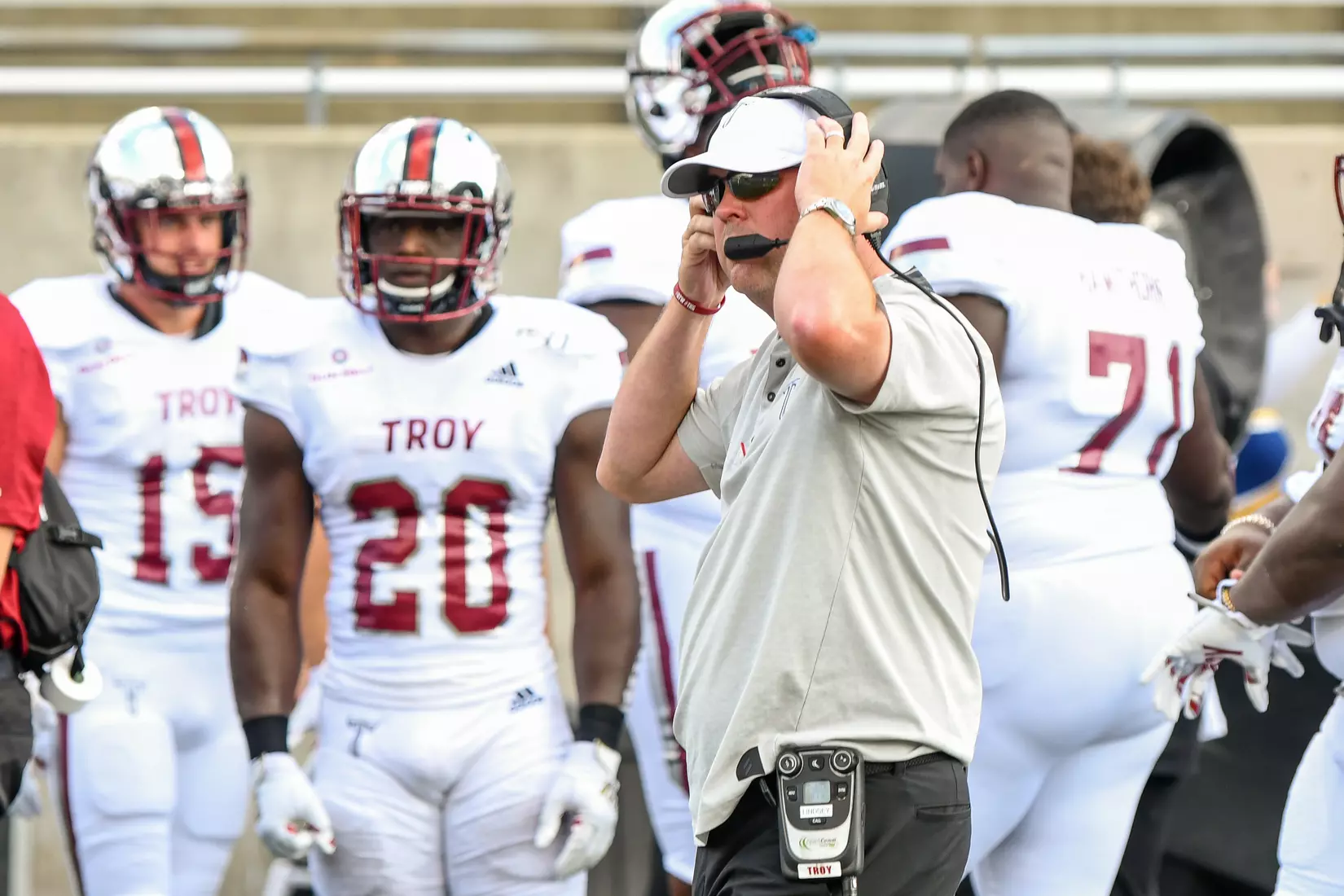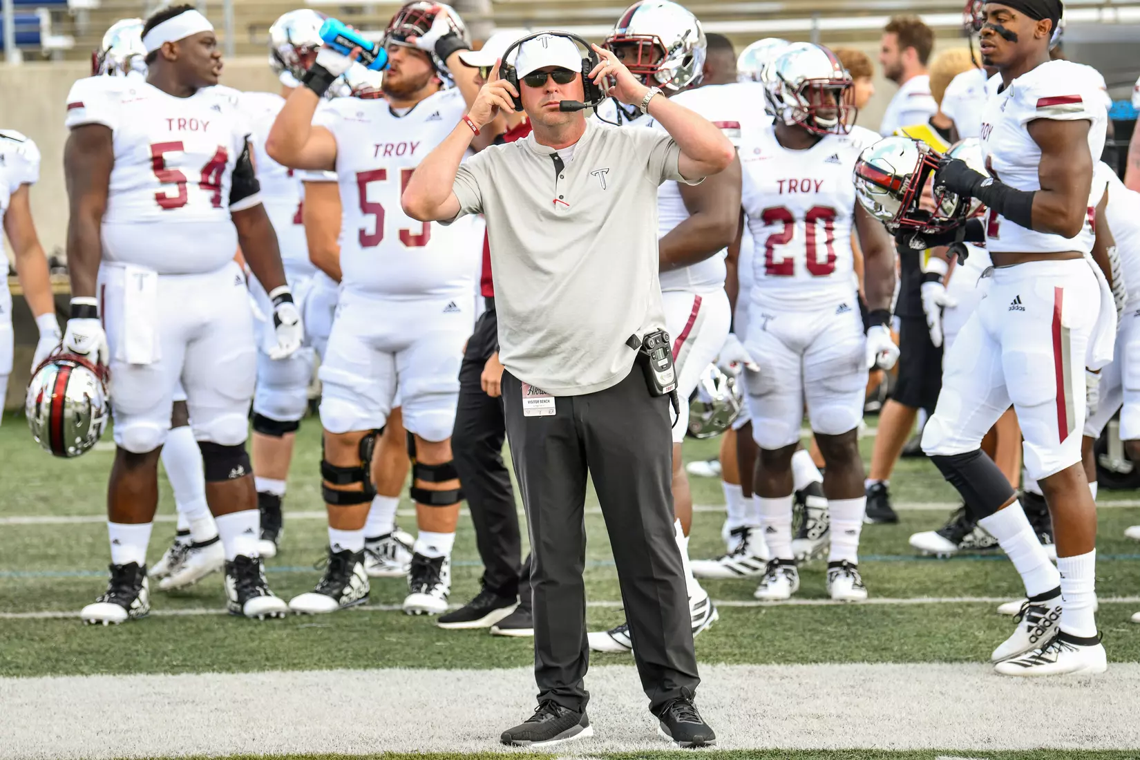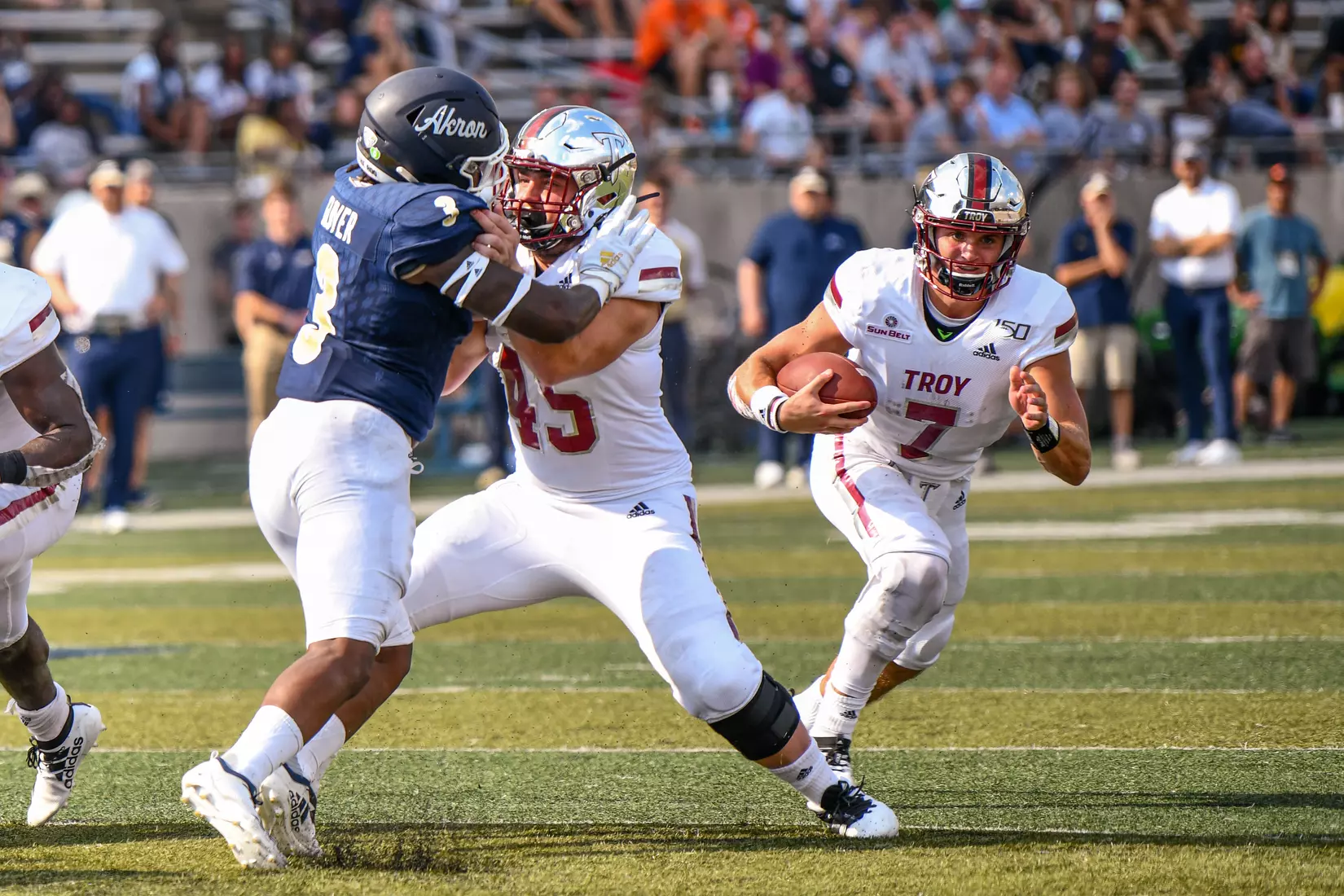 Troy (2-1) broke the game open in the second quarter with a pair of touchdowns – a 2-yard pass from Barker to Khalil McClain and a 9-yard run by Barker – to start a run of 28-straight points by the Trojans to end the game.