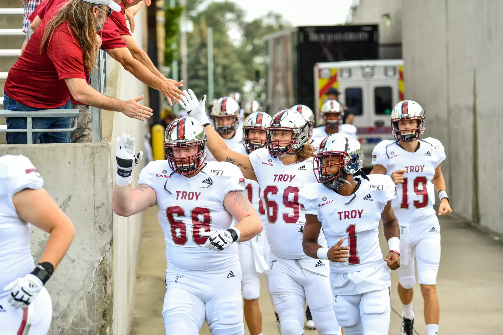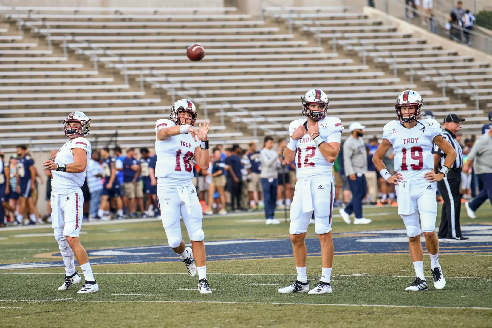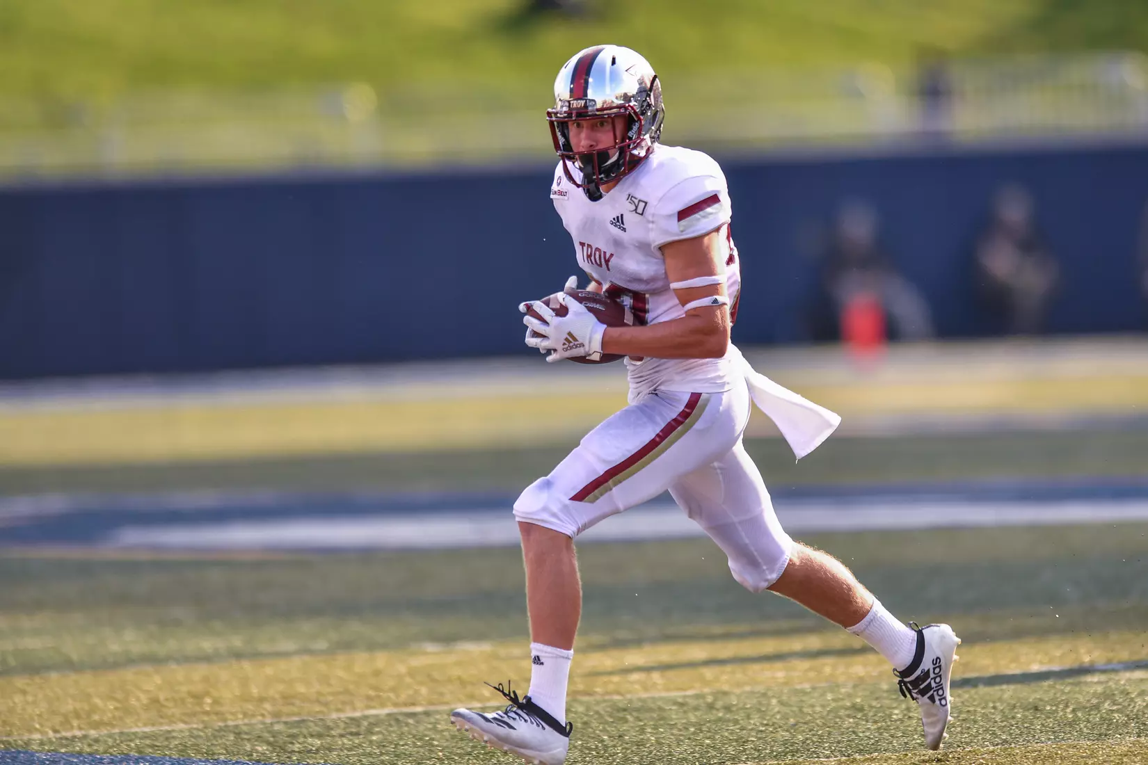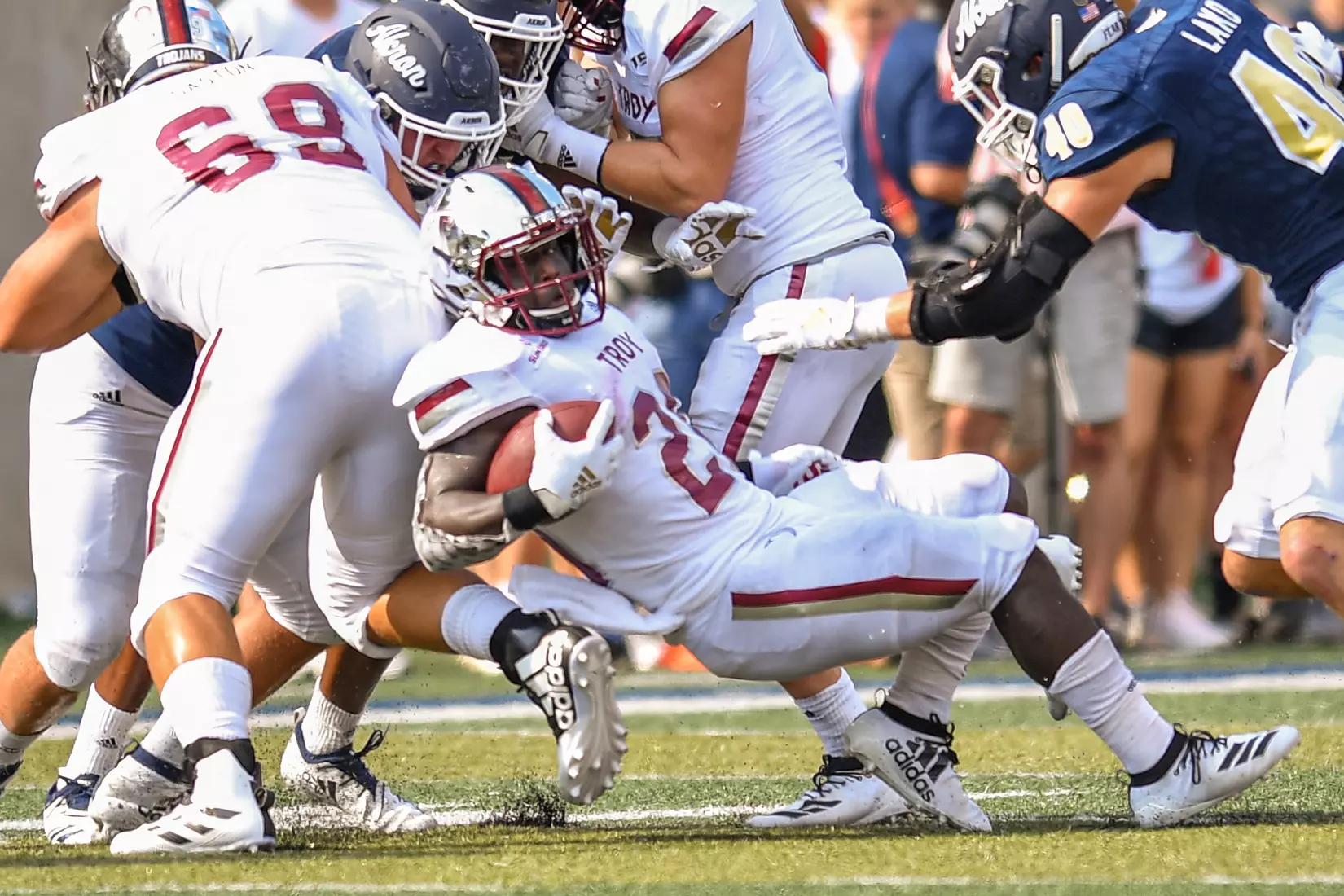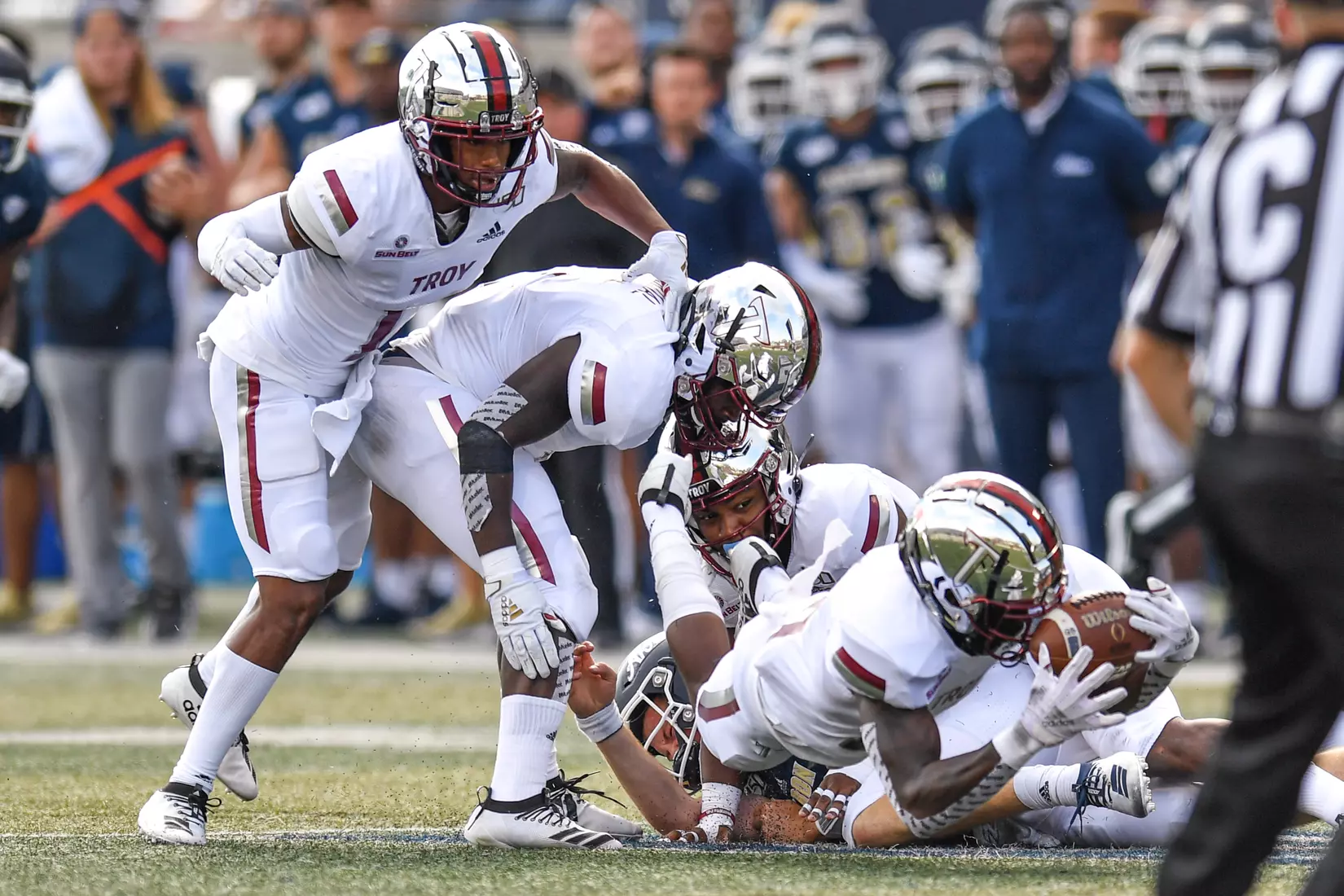 AKRON, OHIO – Kaleb Barker accounted for four touchdowns and the Troy defense limited Akron to just 242 yards as the Trojans defeated the Zips, 35-7, Saturday at InfoCision Stadium.