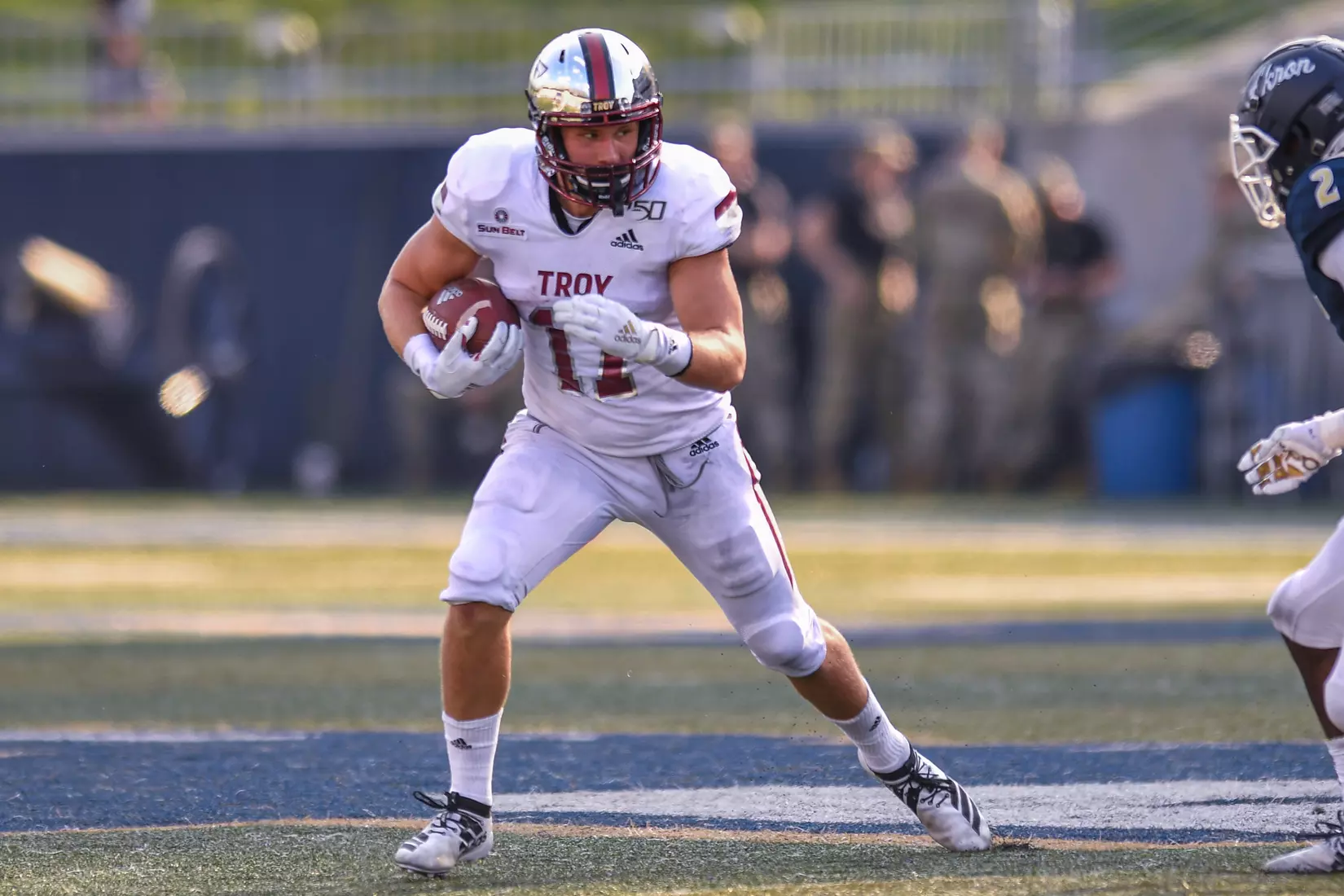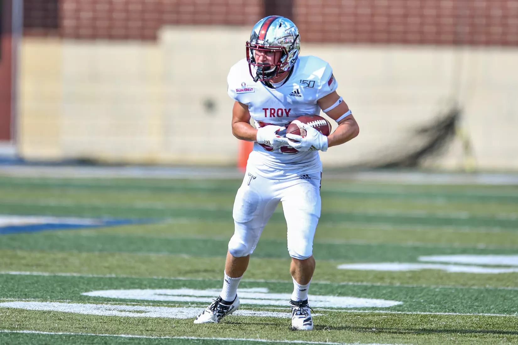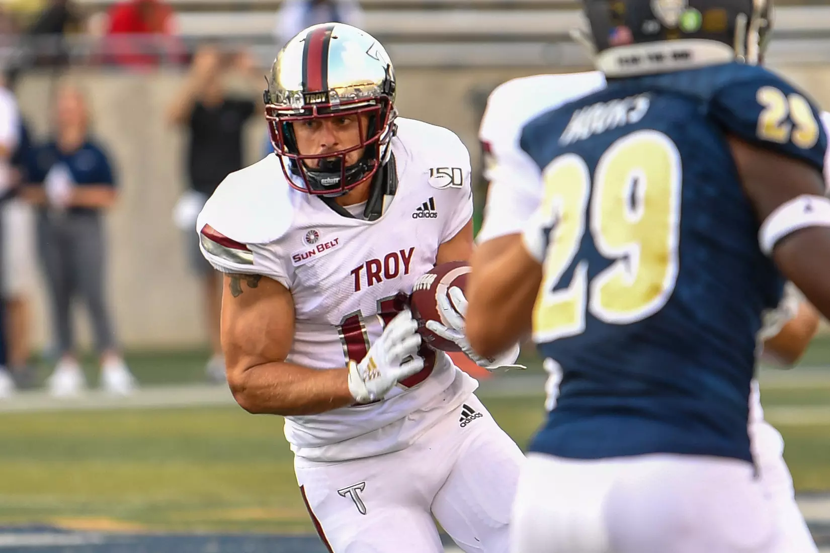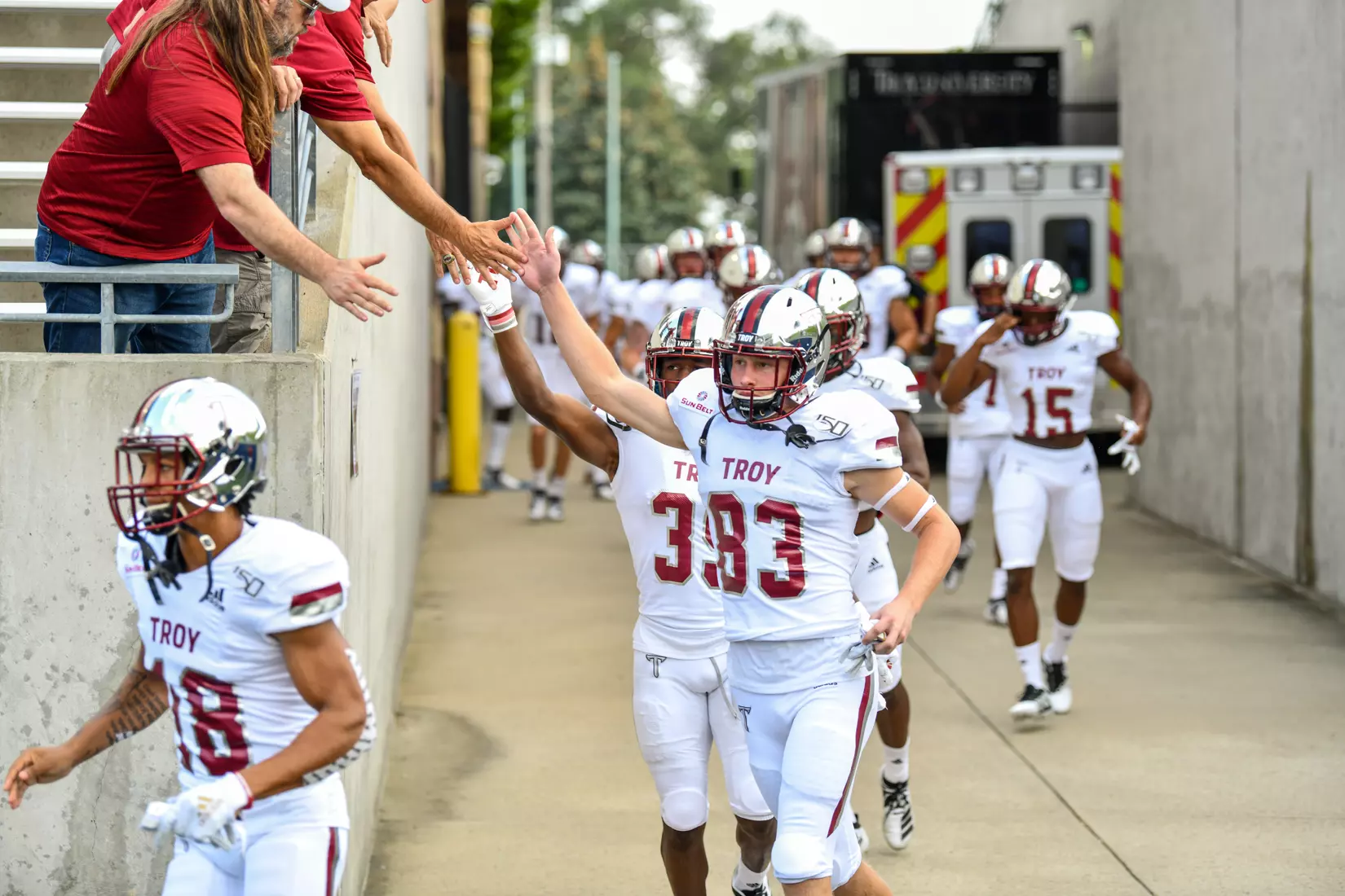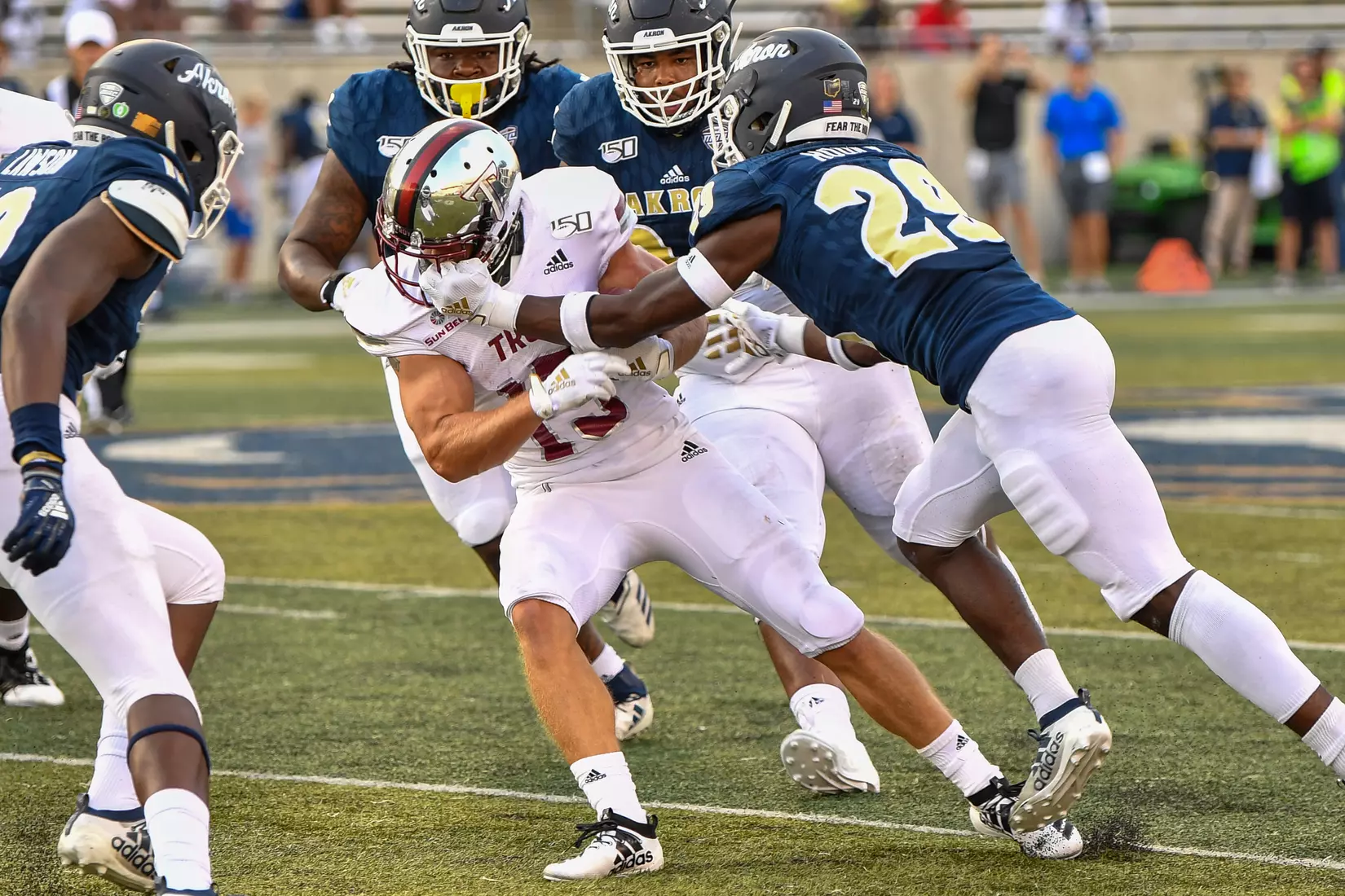 AKRON, OHIO – Kaleb Barker accounted for four touchdowns and the Troy defense limited Akron to just 242 yards as the Trojans defeated the Zips, 35-7, Saturday at InfoCision Stadium.