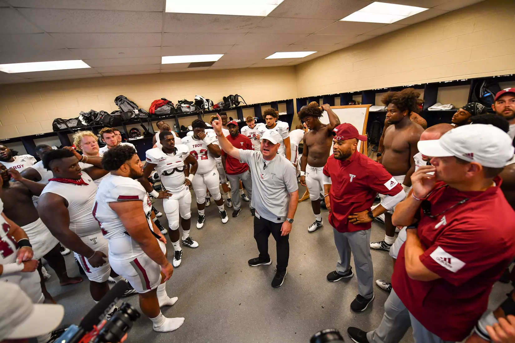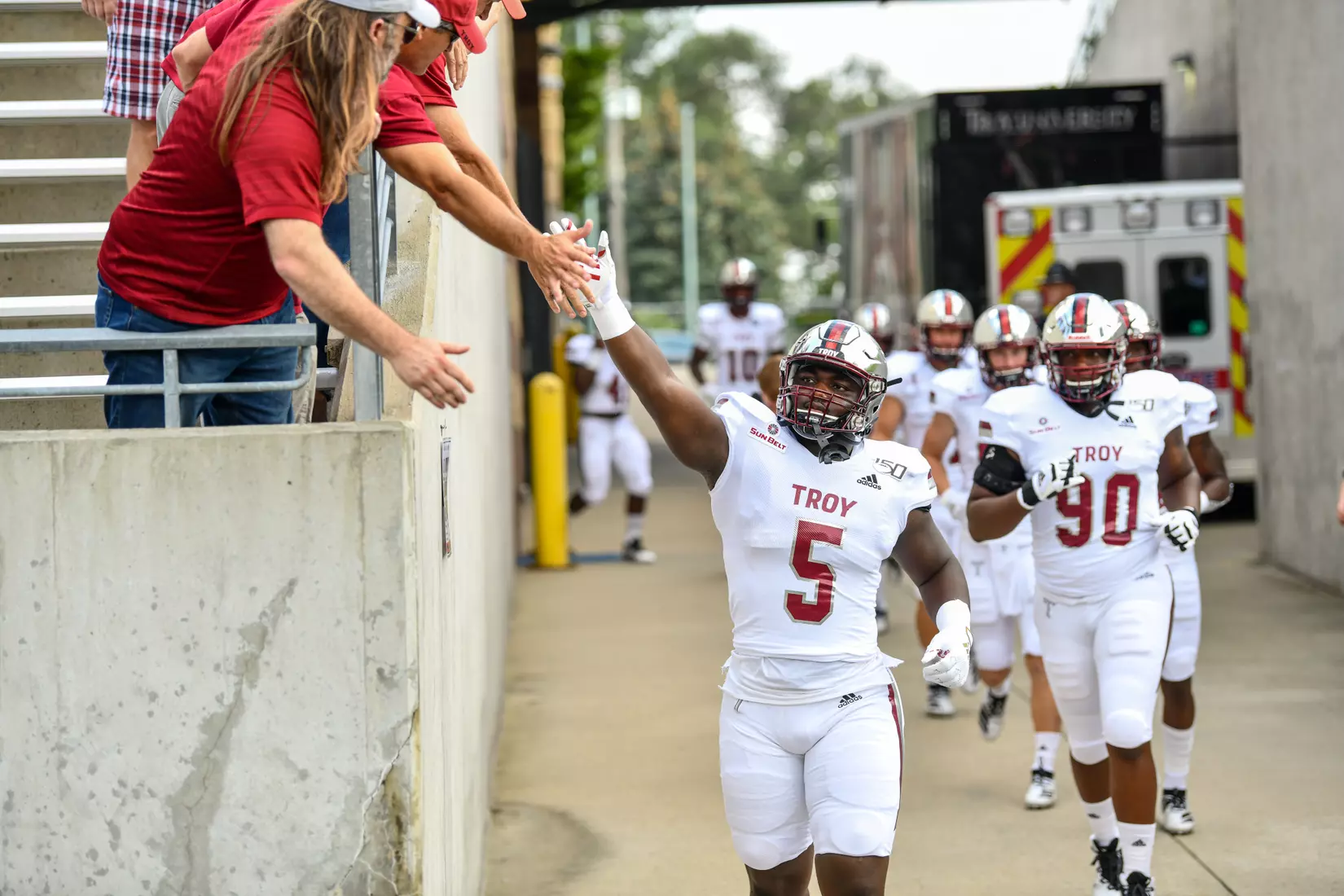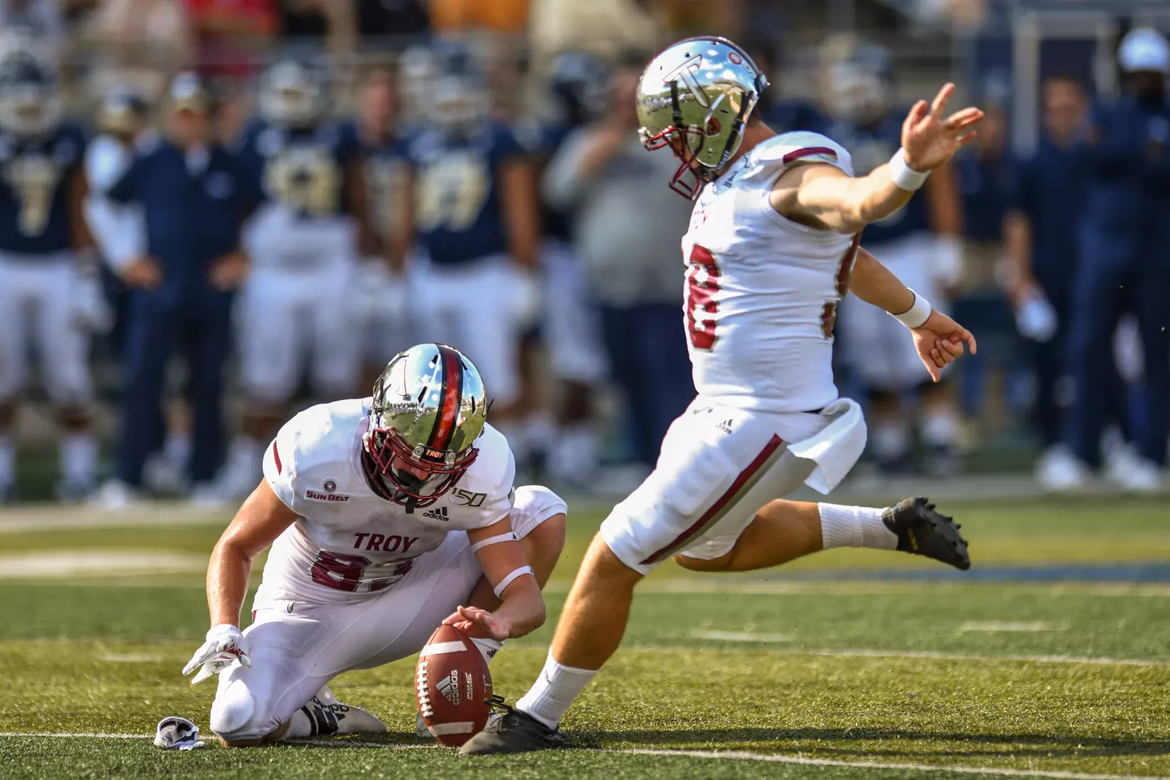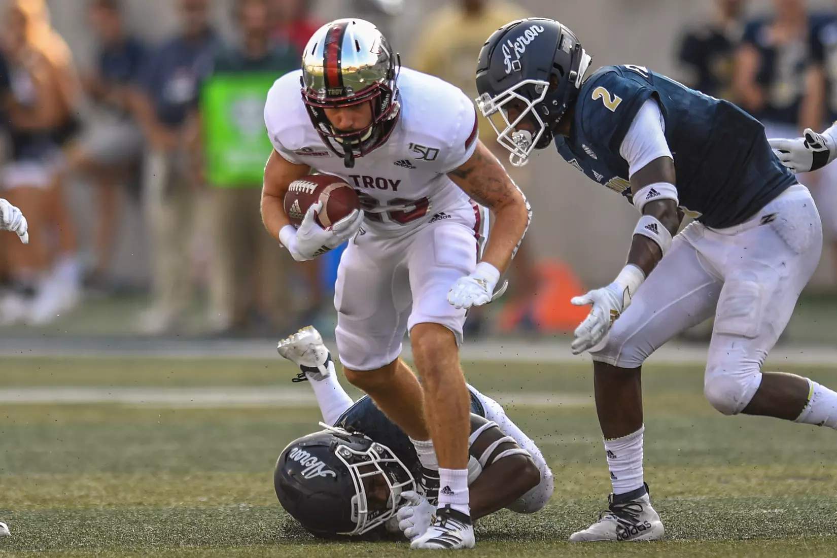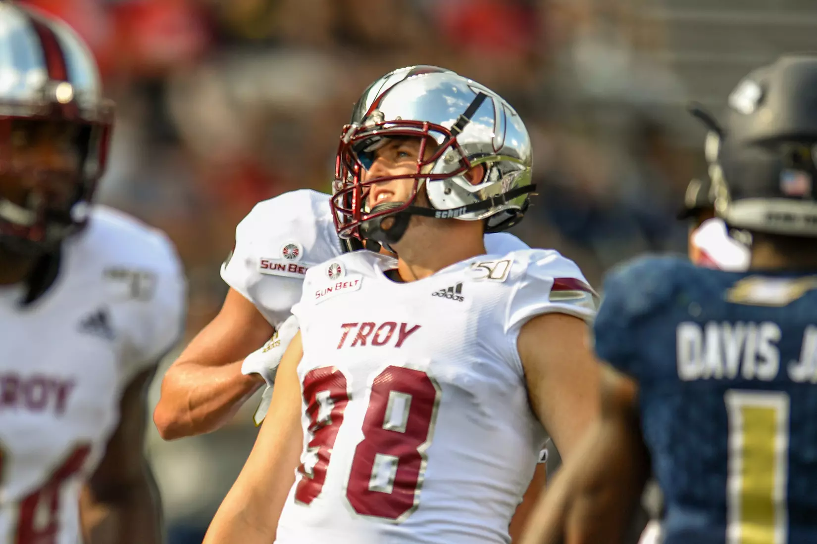 AKRON, OHIO – Kaleb Barker accounted for four touchdowns and the Troy defense limited Akron to just 242 yards as the Trojans defeated the Zips, 35-7, Saturday at InfoCision Stadium.
