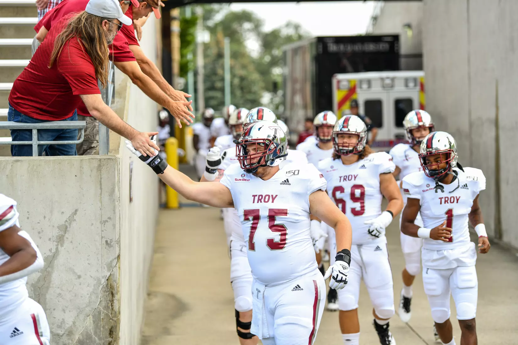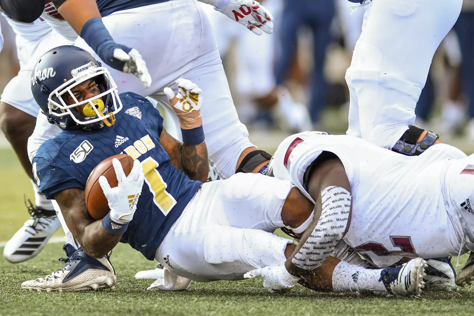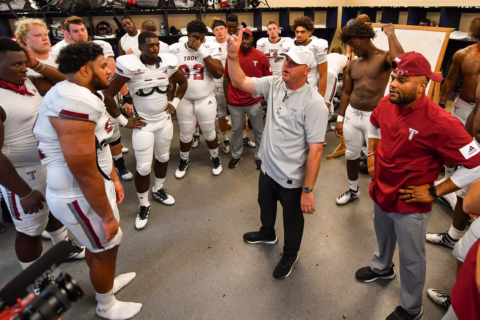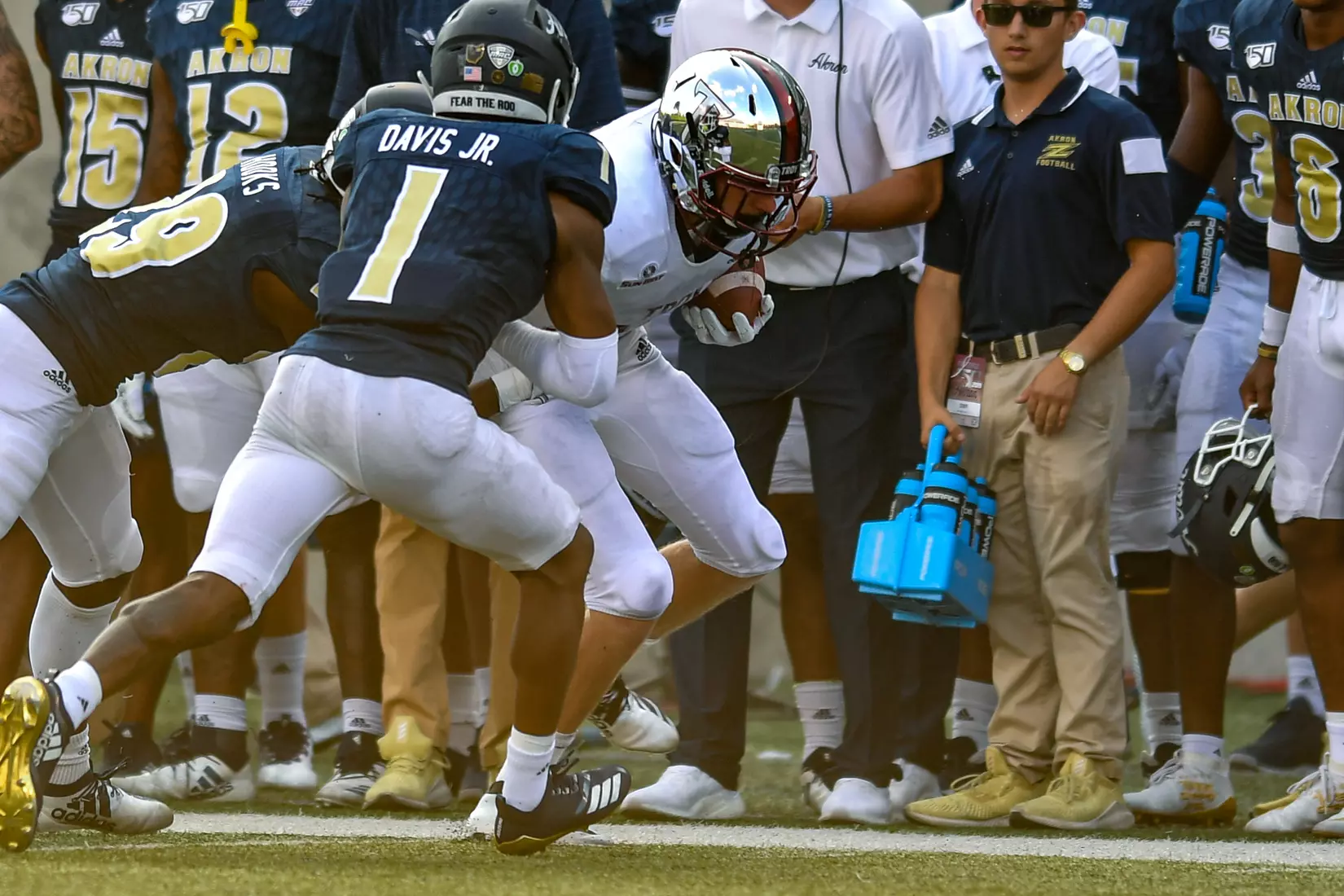 AKRON, OHIO – Kaleb Barker accounted for four touchdowns and the Troy defense limited Akron to just 242 yards as the Trojans defeated the Zips, 35-7, Saturday at InfoCision Stadium.