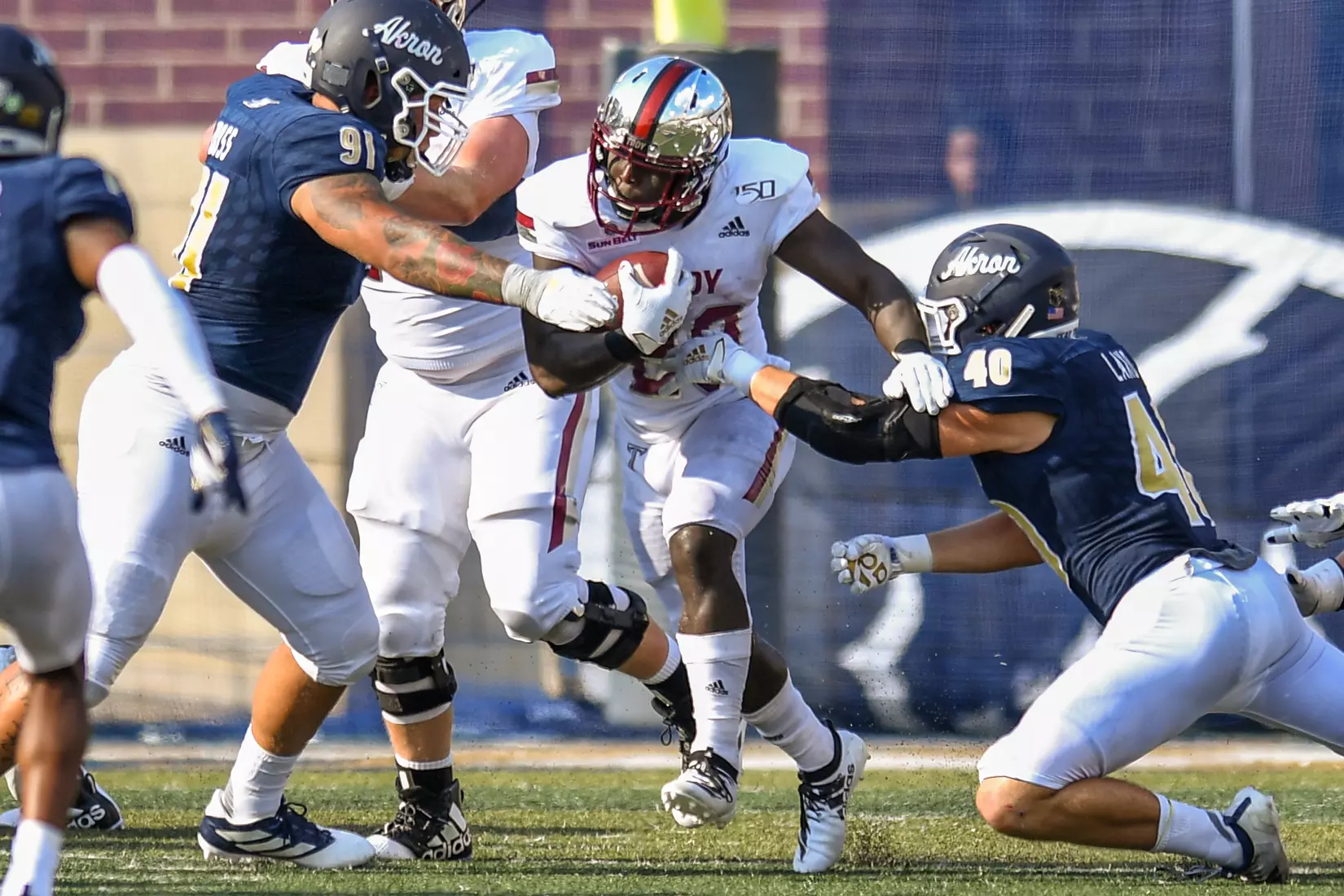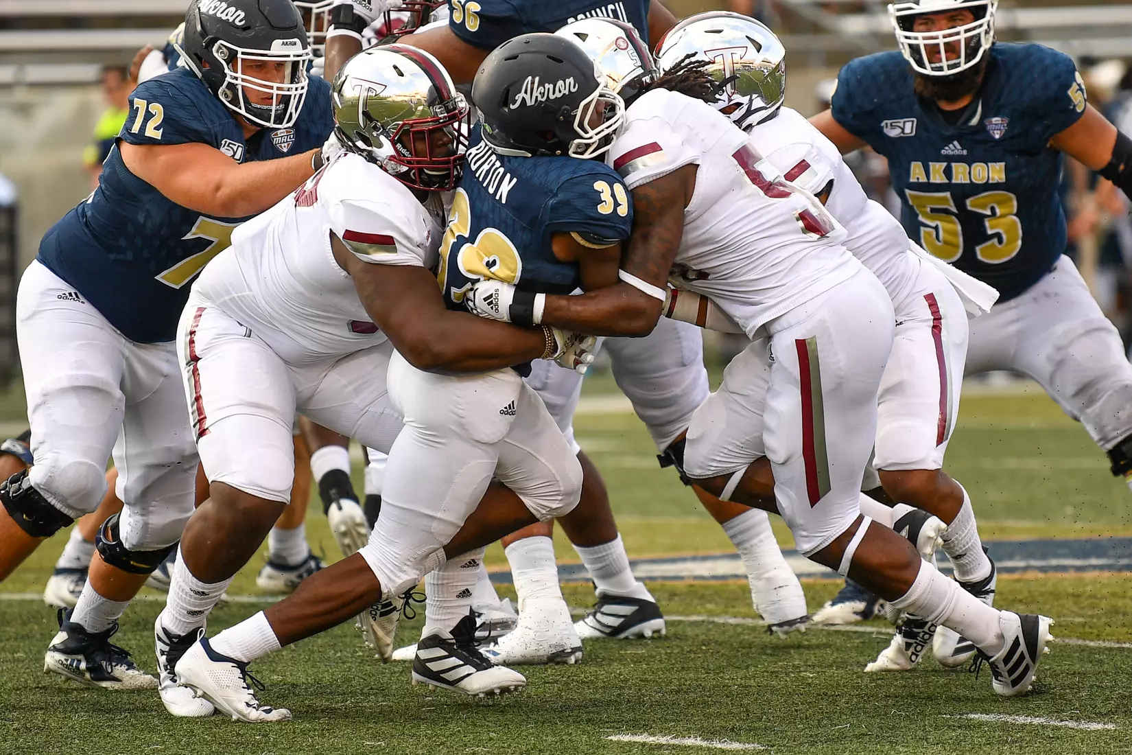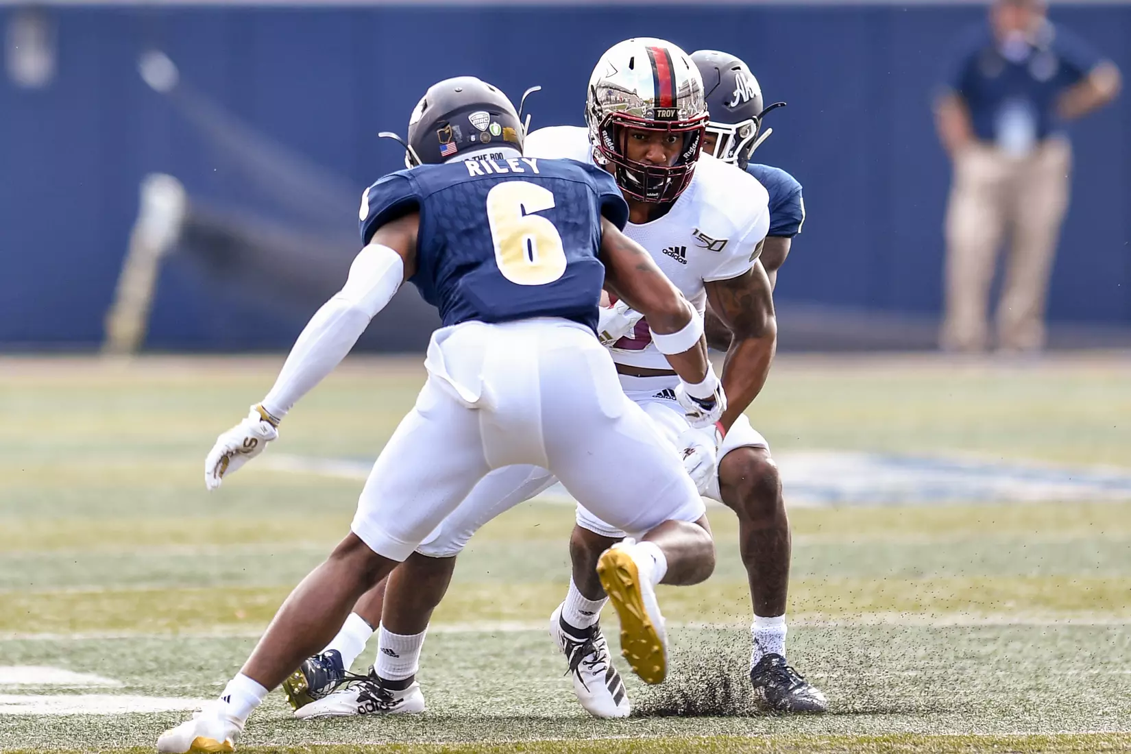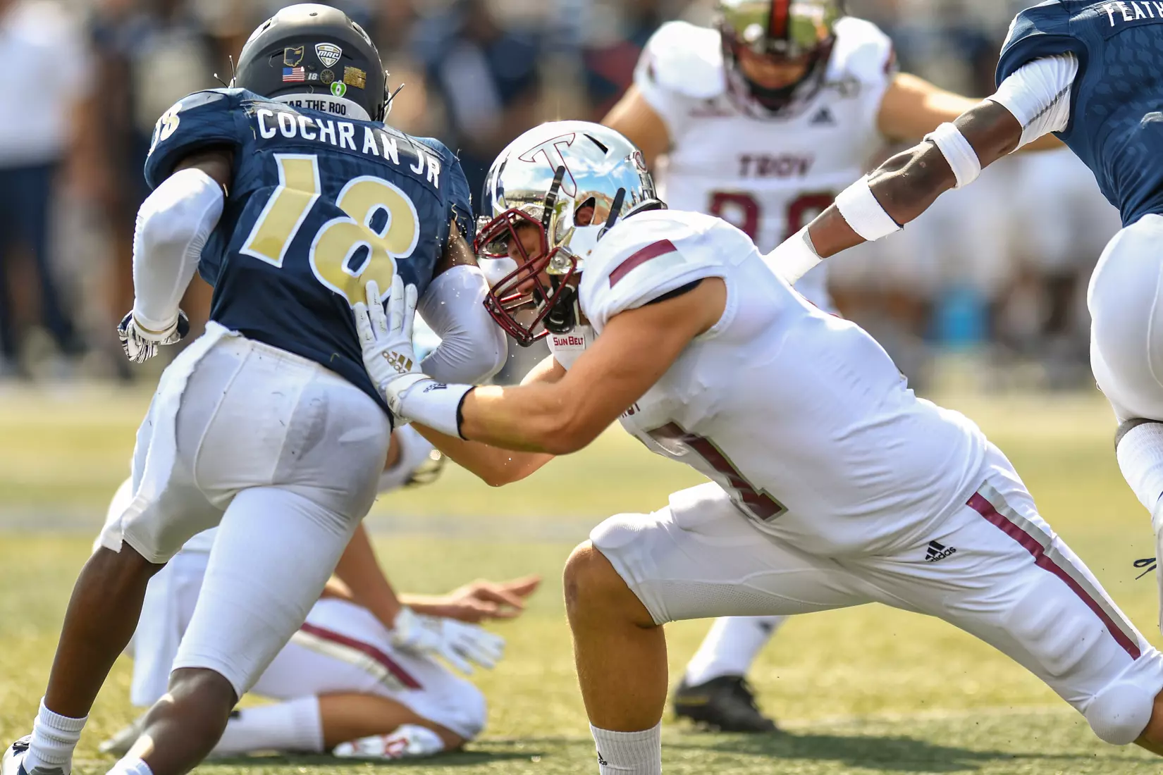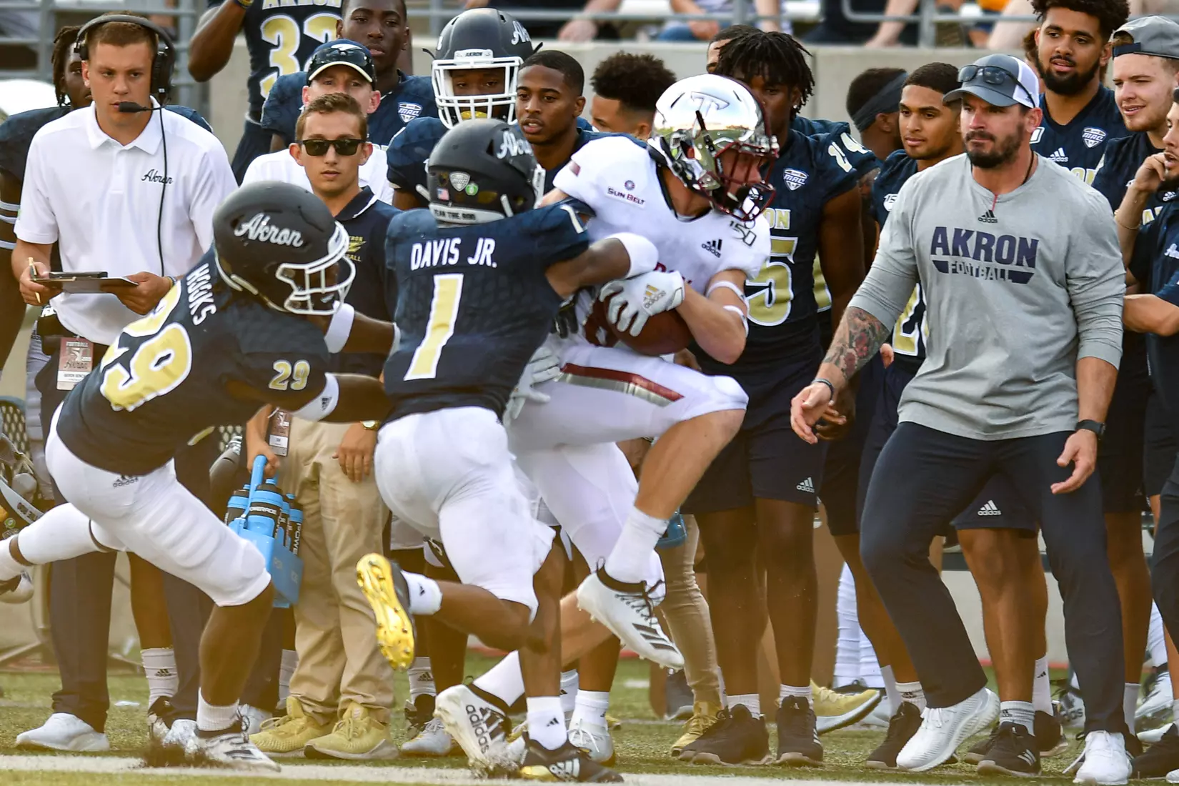AKRON, OHIO – Kaleb Barker accounted for four touchdowns and the Troy defense limited Akron to just 242 yards as the Trojans defeated the Zips, 35-7, Saturday at InfoCision Stadium.