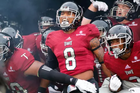 2016 (Junior): Recovered from an offseason injury to turn in one of the best receiving seasons in Troy history … Led the Sun Belt with 80 receptions on the year, which ranked as the second most in a season in Troy history (four shy Jerrel Jernigan’s 84 in 2010) … Ranked third in the Sun Belt with 820 receiving yards (two yards back of second) and tied for second with six touchdown receptions … Finished 23rd nationally in receptions … Four of his six touchdown receptions came in the first five games of the season (all but Clemson); others came against UMass and Ohio in the Dollar General Bowl … Caught a season-high 10 passes for 117 yards against Arkansas State … Posted 70-plus receiving yards in five games; had seven catches for 96 yards in the regular season finale at Georgia Southern … Caught eight passes for 83 yards and a touchdown in the Dollar General Bowl ... Led the Sun Belt with 37 catches of 10 or more yards … Recorded seven or more catches six times and five or more catches in 12-of-13 games ... Named ESPN’s Player of the Game in Troy’s victory over Ohio in the Dollar General Bowl