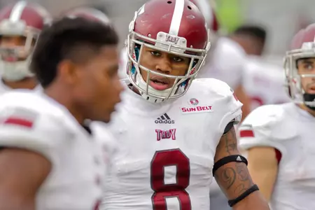 2015 (Sophomore): Troy’s third-leading receiver with 28 catches on the year and fourth with 299 receiving yards and three touchdown receptions … Caught a season-high six passes for 44 yards and two touchdowns in Troy’s victory over ULM … Tallied a season-high 73 receiving yards on five catches, including a season-long 30-yard reception in Troy’s victory at New Mexico State … Started six games at the “Z” wide receiver position … Ended the season with multiple catches in seven straight games; averaged 3.3 catches per game over that span and 2.3 per game for the entire season ... Caught a 6-yard touchdown pass against South Alabama