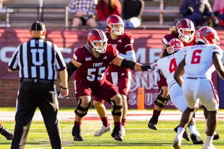 2022 (Senior): Earned All-Sun Belt First Team honors … Started all 14 games at center after transitioning from guard ... Led the Trojans to a Sun Belt Championship, Cure Bowl title and final No. 19 ranking in the AP Top 25; Troy’s first-ever postseason ranking … Played 914 of 917 offensive snaps ... Called for just four penalties in 14 games … Highest-rated offensive lineman in the Sun Belt per Pro Football Focus for overall offensive grade … Troy’s top-rated run blocker per Pro Football Focus … Finished season with 97.5 PFF Efficiency rating … Played 2,796 career snaps, allowed just six sacks in 1,653 career pass-blocking situations … Played 1,052 snaps at center and 1,741 snaps at guard … Behind the offensive line, Troy scored on 50 percent of more its possessions in the final two regular season games and the SBC Championship game