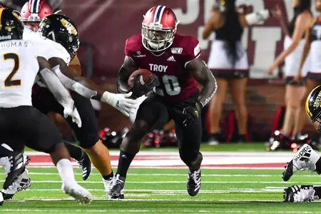 2019 (Sophomore): Took over as Troy’s primary starting running back in the middle of week two after a season-ending injury to Preseason Sun Belt Offensive Player of the Year B.J. Smith … Rushed for 899 yards on 154 carries with 10 touchdowns … Ranked sixth in the league with four 100-yard games on the season – Akron (100 yards), Arkansas State (103 yards), South Alabama (100 yards) and Georgia Southern (163 yards) … Averaged 6.13 yards per carry in his four games with 100-plus yards … Averaged 77.4 yards over the final 10 games of the season as the starter … Also caught 25 passes for 211 yards … Finished third on the team averaging 92.7 all-purpose yards per game … Found the end zone twice and rushed for 163 yards on just 14 carries in Troy’s victory over Georgia Southern … Ranked third in the Sun Belt (min. 150 carries) averaging 5.84 yards per carry – ranked 23rd nationally in the same category … Played 545 total snaps on the season; the third most on the team by a non-offensive lineman and quarterback Kaleb Barker